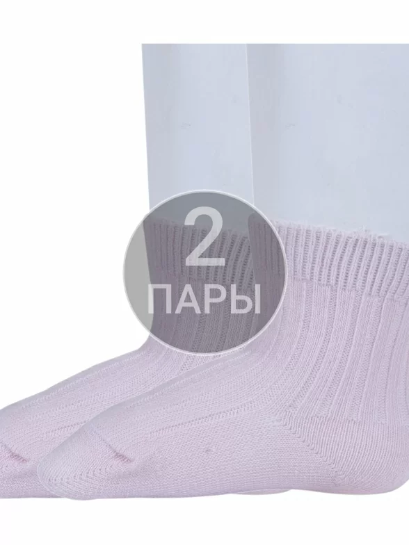 Комплект детских носков из 2 пар, круглогодичные, укороченные, цвет розовый жемчуг, классические, шов обычный (не бесшовные), принт (рисунок): в рубчик, однотонный, состав: 74% хлопок, 24% полиамид, 2% эластан, арт. 2-С1583. Производитель «ГАММА» Россия под брендом «Гамма».