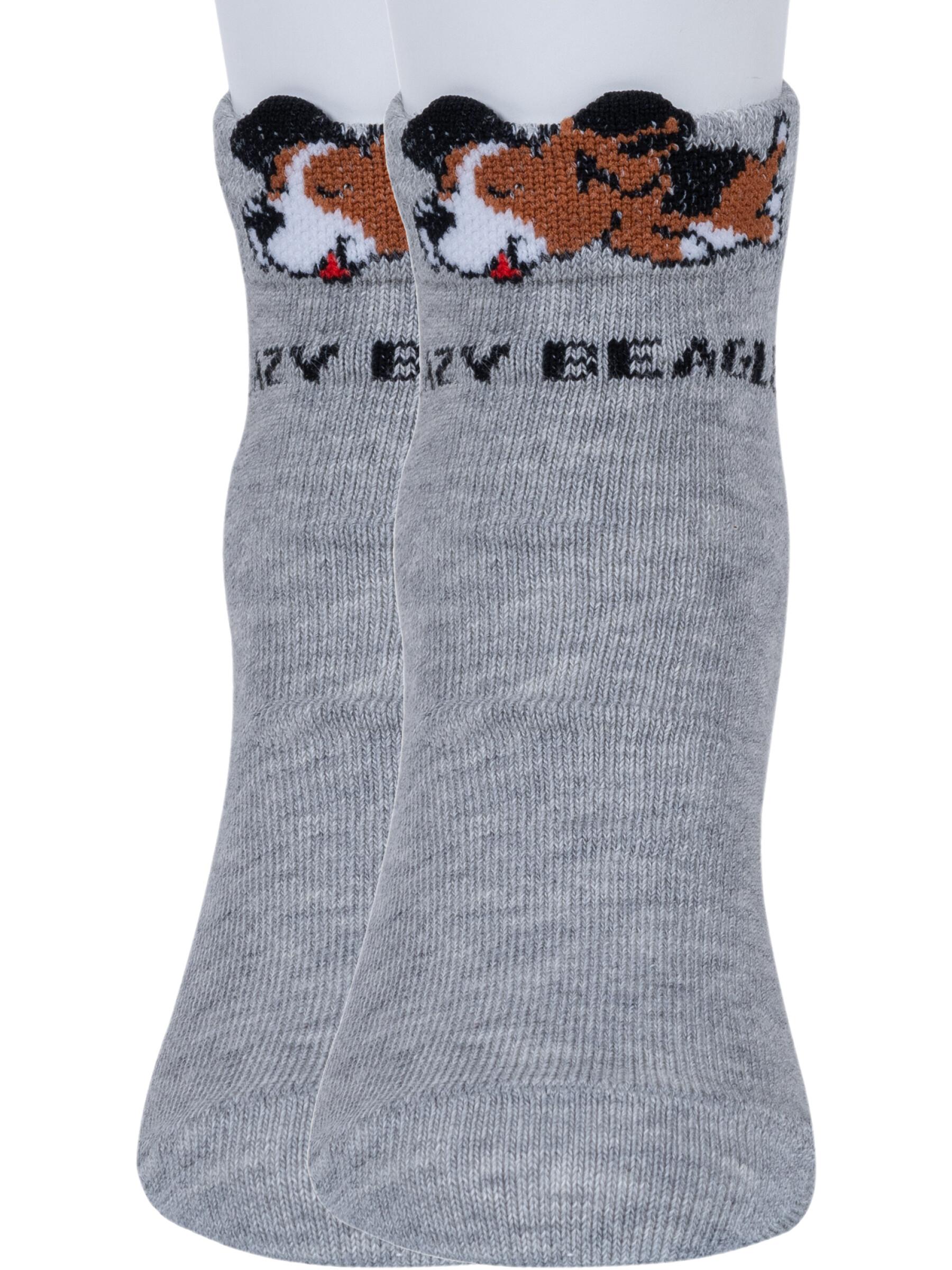 Комплект детских носков из 2 пар, круглогодичные, короткие, цвет светло-серый меланж, повседневные, шов обычный (не бесшовные), принт (рисунок): с узором, животные, ягодно-фруктовый, состав: 74% хлопок, 24% полиамид, 2% эластан, арт. 2-С1707. Производитель «ГАММА» Россия под брендом «Гамма».