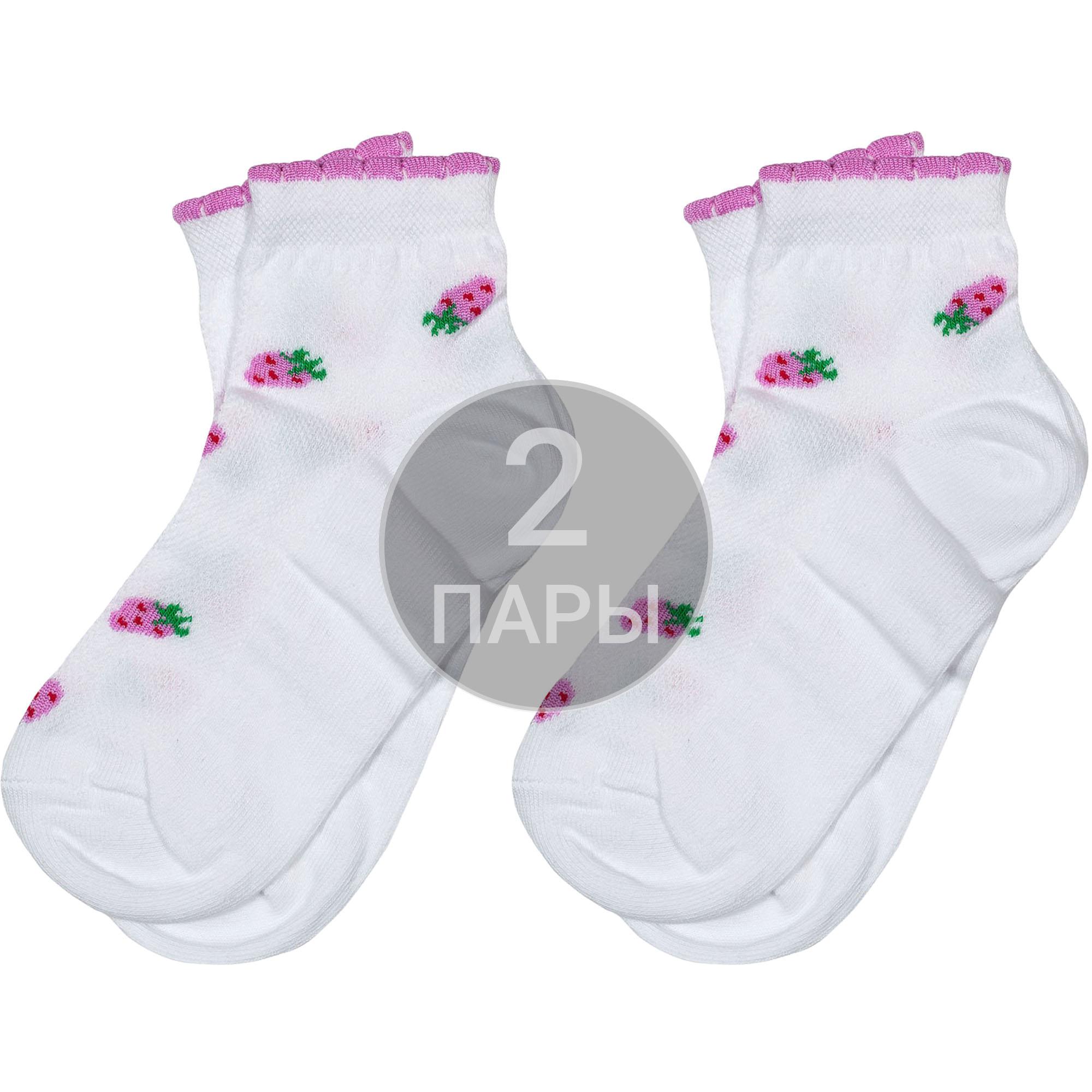 Комплект детских носков из 2 пар, летние, укороченные, цвет белый, повседневные, в сеточку, шов обычный (не бесшовные), принт (рисунок): овощи / фрукты / ягоды, еда и напитки, с узором, состав: 88% хлопок, 10% полиамид, 2% лайкра, арт. 2-D-3R4. Производитель «ХОХ» Россия под брендом «Хох».