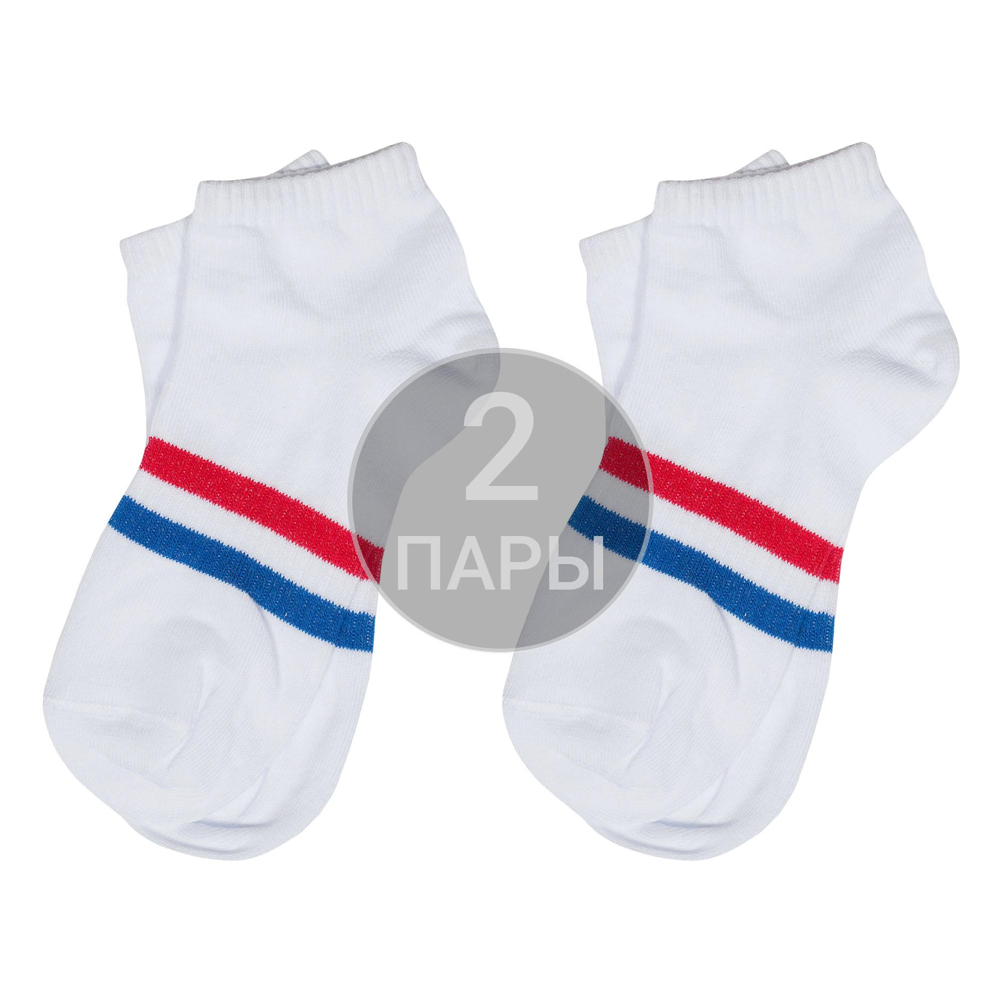 Комплект детских носков из 2 пар, межсезонные или летние, короткие, цвет белый, повседневные, шов обычный (не бесшовные), принт (рисунок): полоски, с узором, состав: 88% хлопок, 10% полиамид, 2% эластан, арт. 2-SPD-16. Производитель «ХОХ» Россия под брендом «Хох».