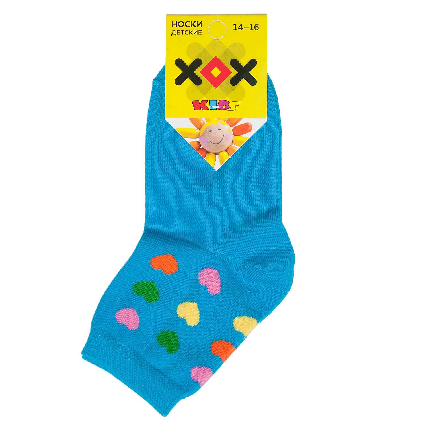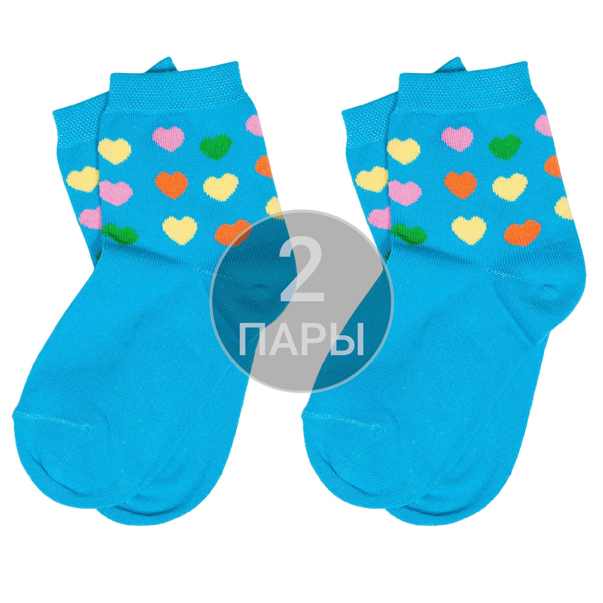 Комплект детских носков из 2 пар, круглогодичные, средней длины, цвет бирюзовый, повседневные, шов обычный (не бесшовные), принт (рисунок): сердечки / поцелуи / любовь, с узором, состав: 88% хлопок, 10% полиамид, 2% лайкра, арт. 2-D-3R2. Производитель «ХОХ» Россия под брендом «Хох».