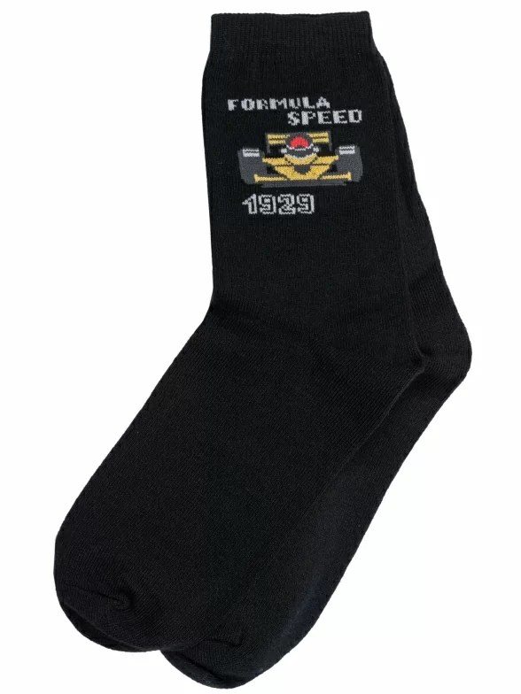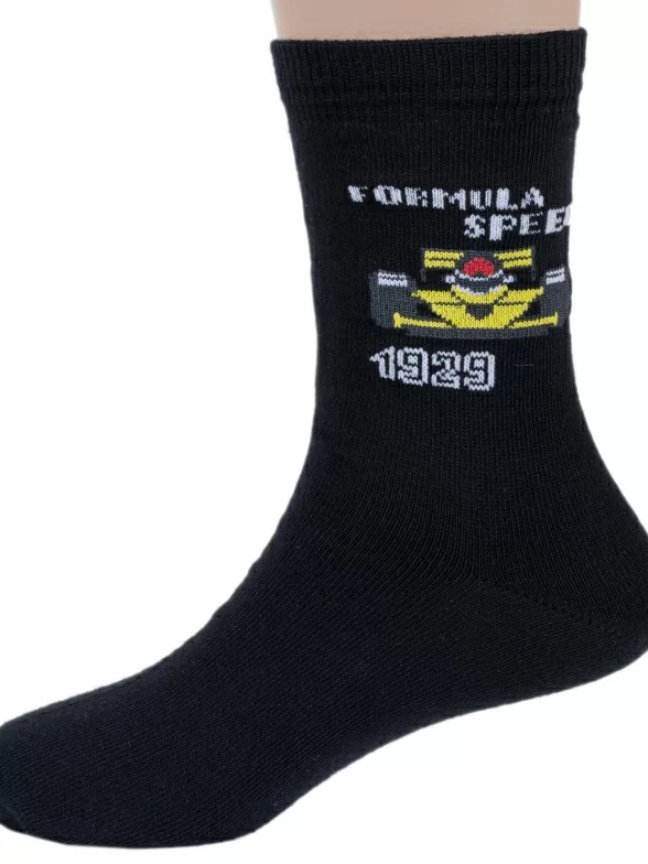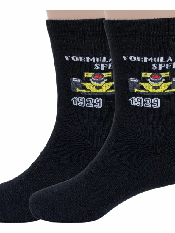 Комплект детских носков из 2 пар, круглогодичные, средней длины, цвет черный, повседневные, шов обычный (не бесшовные), принт (рисунок): транспорт, надписи, с узором, крупные контрастные рисунки, состав: 88% хлопок, 10% полиамид, 2% эластан, арт. 2-d-1211. Производитель «ХОХ» Россия под брендом «Хох».