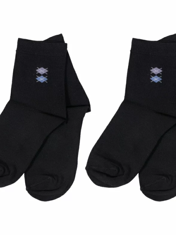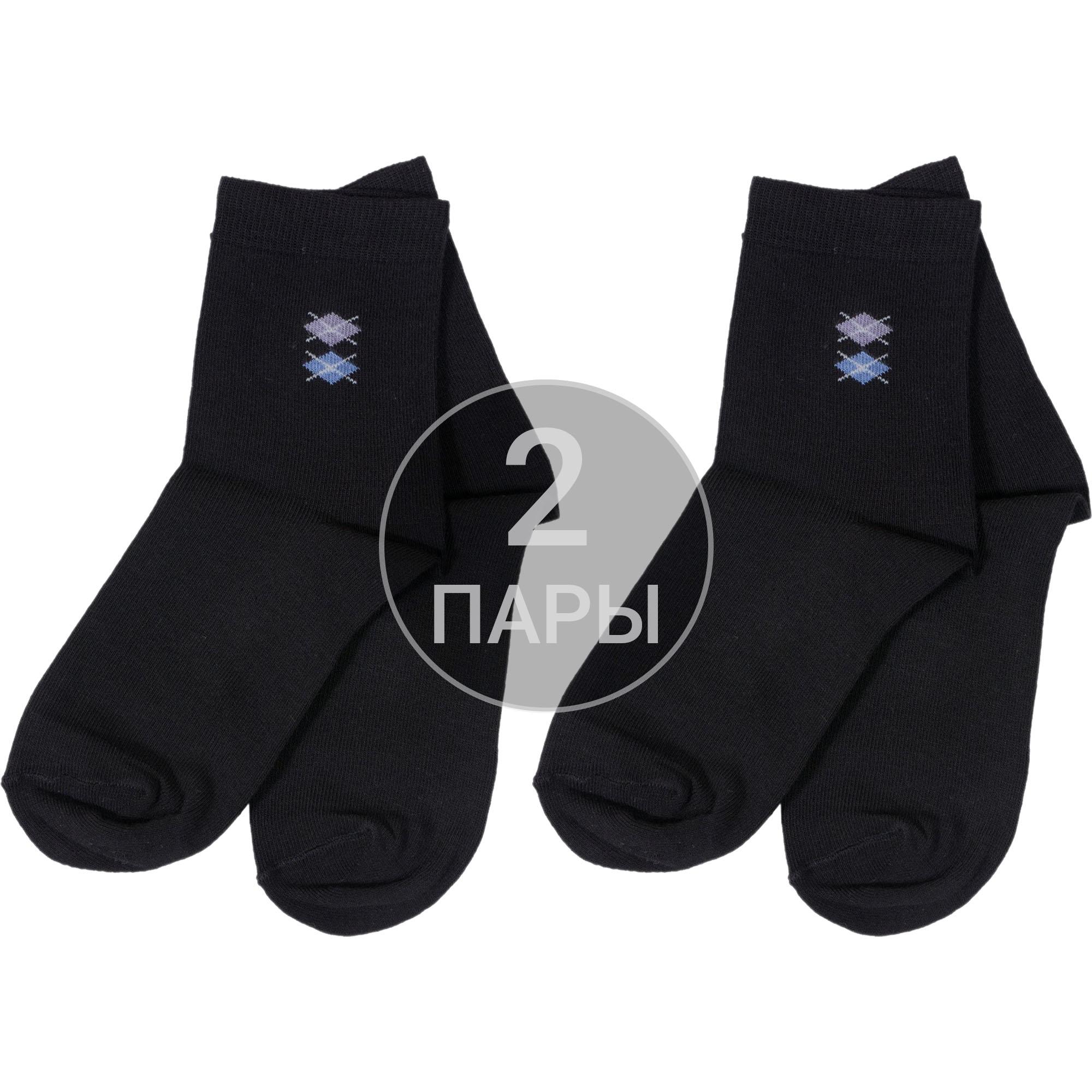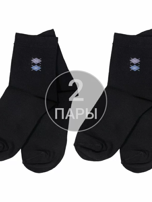 Комплект детских носков из 2 пар, круглогодичные, средней длины, цвет черный, классические, шов обычный (не бесшовные), принт (рисунок): аргайл, однотонный, небольшой рисунок, состав: 80% хлопок, 15% полиамид, 5% эластан, арт. 2-D-3R13. Производитель «ХОХ» Россия под брендом «Хох».