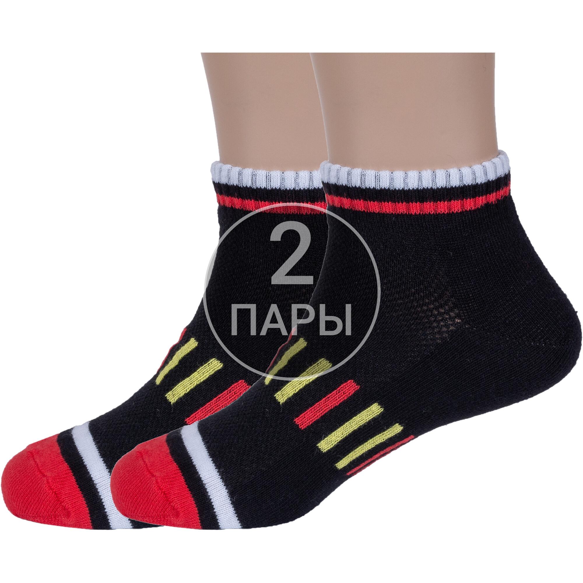 Комплект детских носков из 2 пар, летние, короткие, цвет черный, повседневные, в сеточку, шов обычный (не бесшовные), принт (рисунок): спортивные, с узором, состав: 88% хлопок, 10% полиамид, 2% эластан, арт. 2-SPD-15. Производитель «ХОХ» Россия под брендом «Хох».