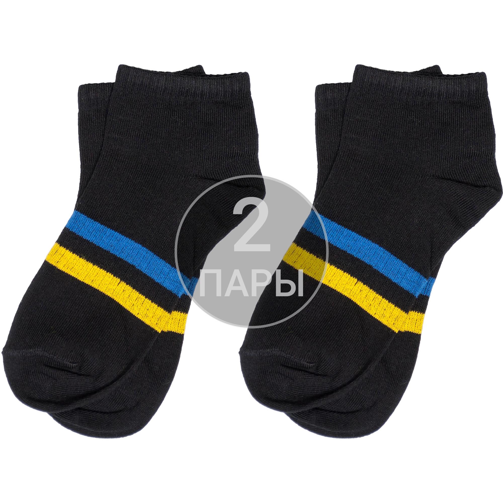 Комплект детских носков из 2 пар, межсезонные или летние, короткие, цвет черный, повседневные, шов обычный (не бесшовные), принт (рисунок): полоски, с узором, состав: 88% хлопок, 10% полиамид, 2% эластан, арт. 2-SPD-16. Производитель «ХОХ» Россия под брендом «Хох».