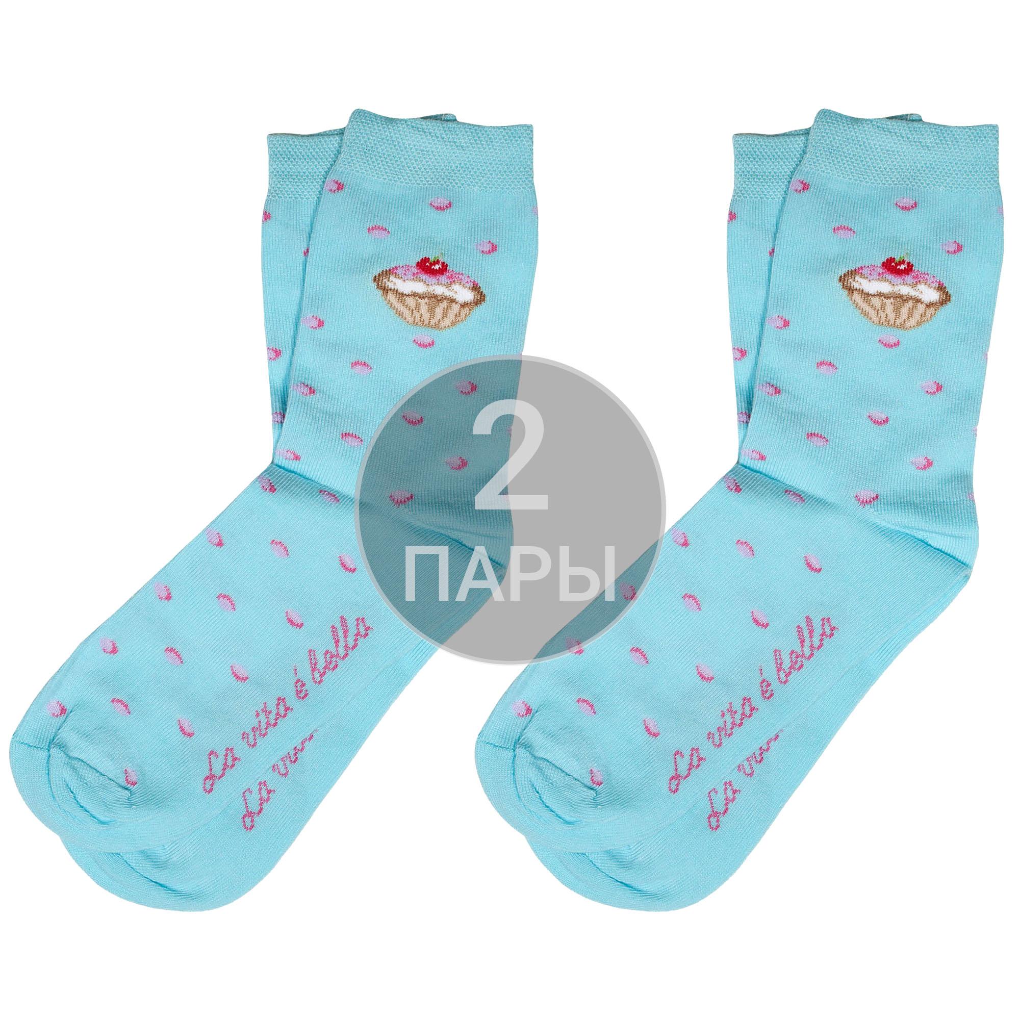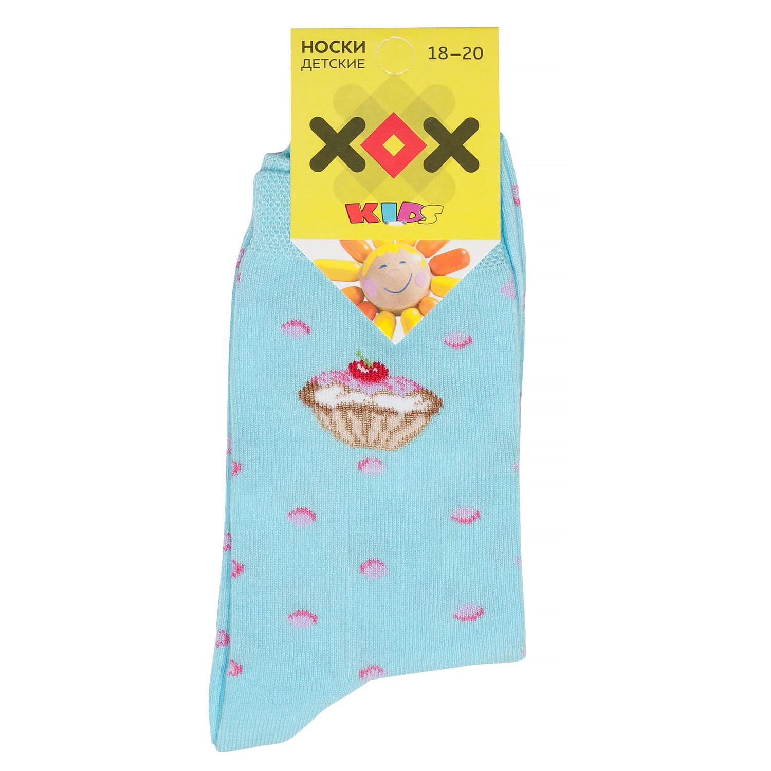 Комплект детских носков из 2 пар, круглогодичные, средней длины, цвет голубой, повседневные, шов обычный (не бесшовные), принт (рисунок): мелкий принт, горох/точка, вкусности, с узором, состав: 88% хлопок, 10% полиамид, 2% лайкра, арт. 2-D-3R8. Производитель «ХОХ» Россия под брендом «Хох».