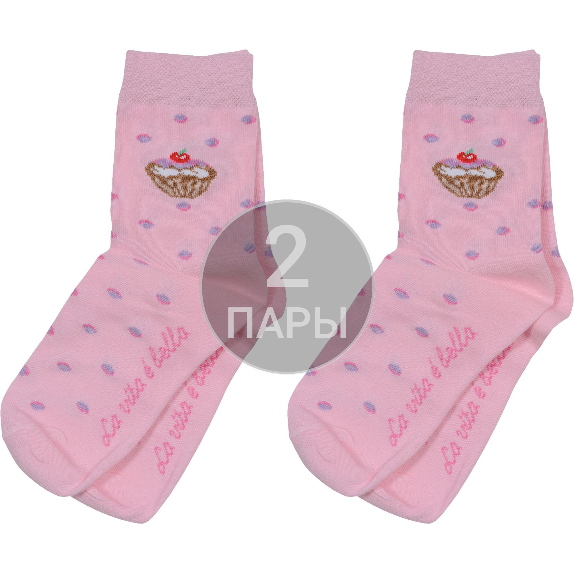 Комплект детских носков из 2 пар, круглогодичные, средней длины, цвет розовый, повседневные, шов обычный (не бесшовные), принт (рисунок): мелкий принт, горох/точка, вкусности, с узором, состав: 88% хлопок, 10% полиамид, 2% лайкра, арт. 2-D-3R8. Производитель «ХОХ» Россия под брендом «Хох».