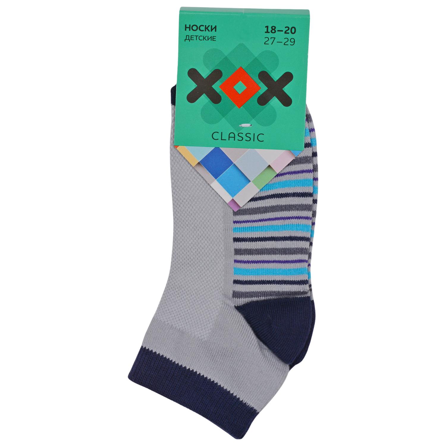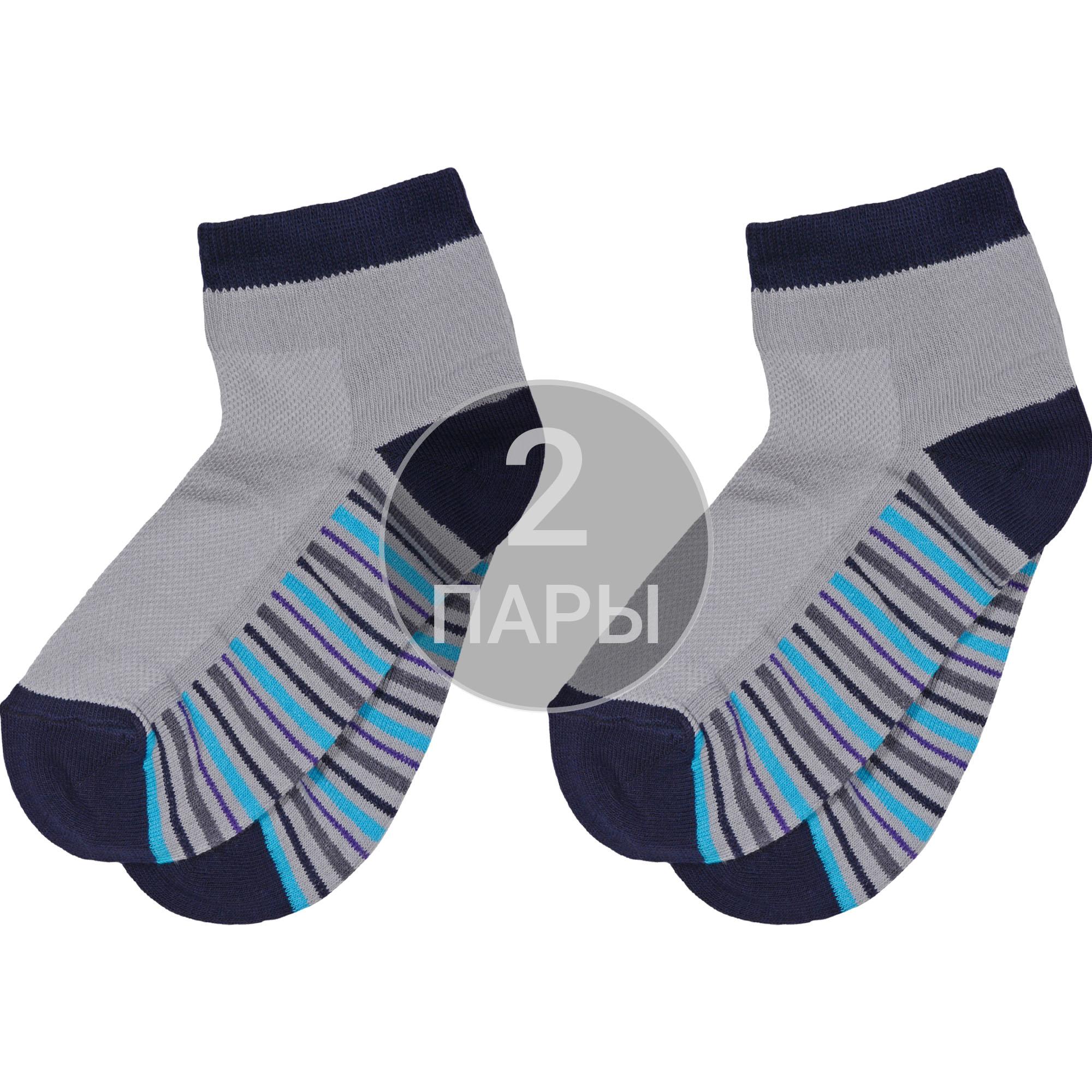 Комплект детских носков из 2 пар, летние, укороченные, цвет серый, повседневные, в сеточку, шов обычный (не бесшовные), принт (рисунок): полоски, с узором, состав: 88% хлопок, 10% полиамид, 2% эластан, арт. 2-D-3R5. Производитель «ХОХ» Россия под брендом «Хох».