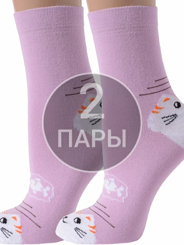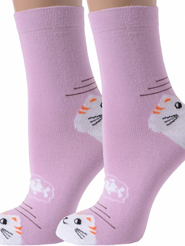 Комплект детских носков из 2 пар, круглогодичные, средней длины, цвет сиреневый, повседневные, необычные, шов обычный (не бесшовные), принт (рисунок): животные, с узором, крупные контрастные рисунки, состав: 88% хлопок, 10% полиамид, 2% лайкра, арт. 2-D-3R12. Производитель «ХОХ» Россия под брендом «Хох».