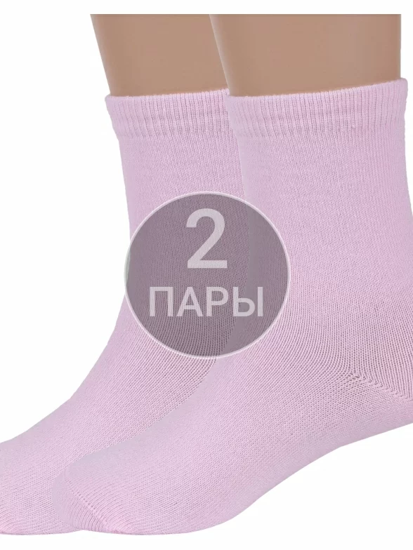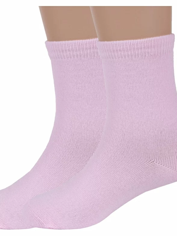 Комплект детских носков из 2 пар, круглогодичные, средней длины, цвет светло-розовый, классические, шов обычный (не бесшовные), принт (рисунок): однотонный, без рисунков/узоров, состав: 88% хлопок, 10% полиамид, 2% эластан, арт. 2-d-1227. Производитель «ХОХ» Россия под брендом «Хох».