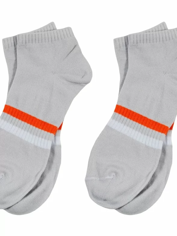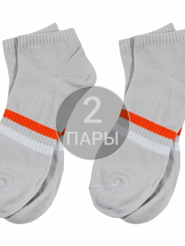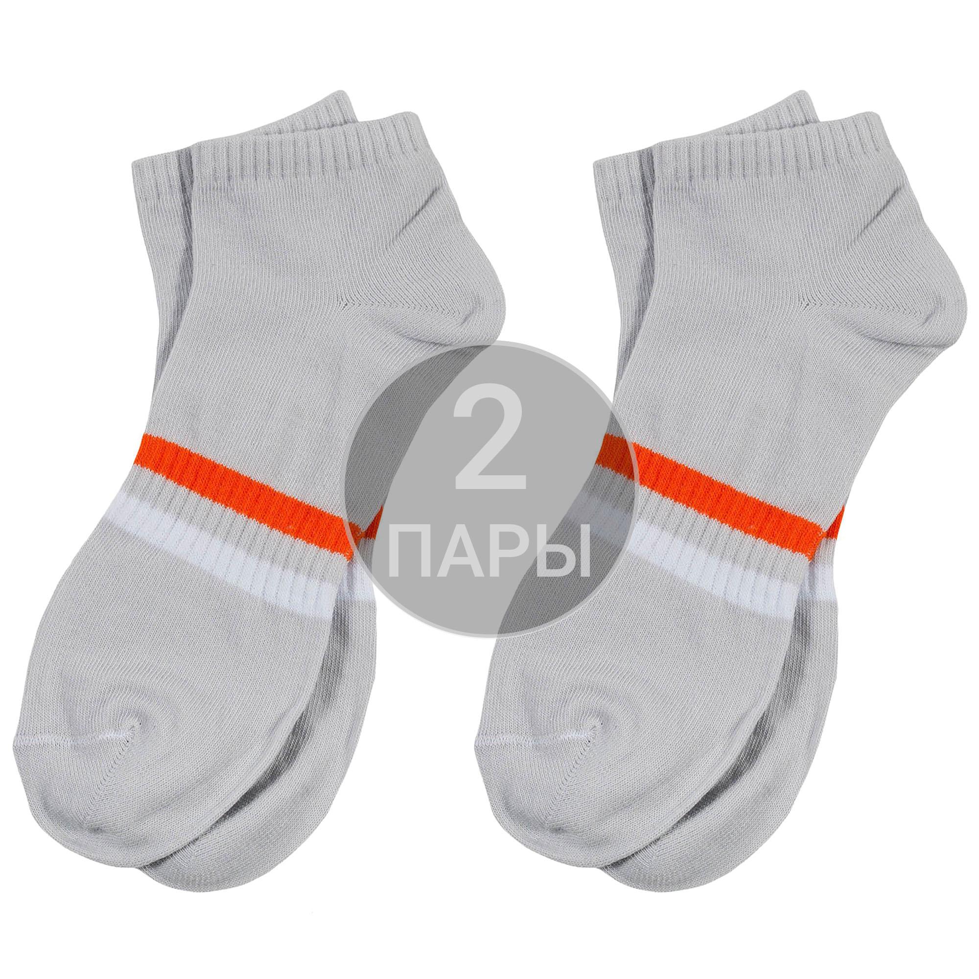 Комплект детских носков из 2 пар, межсезонные или летние, короткие, цвет светло-серый, повседневные, шов обычный (не бесшовные), принт (рисунок): полоски, с узором, состав: 88% хлопок, 10% полиамид, 2% эластан, арт. 2-SPD-16. Производитель «ХОХ» Россия под брендом «Хох».