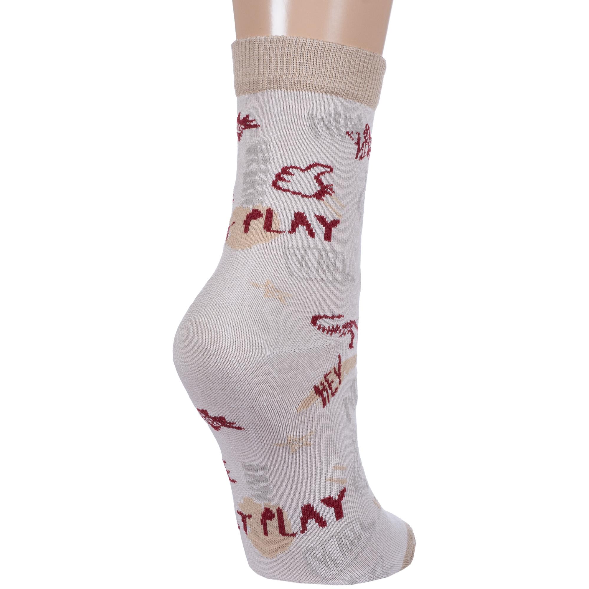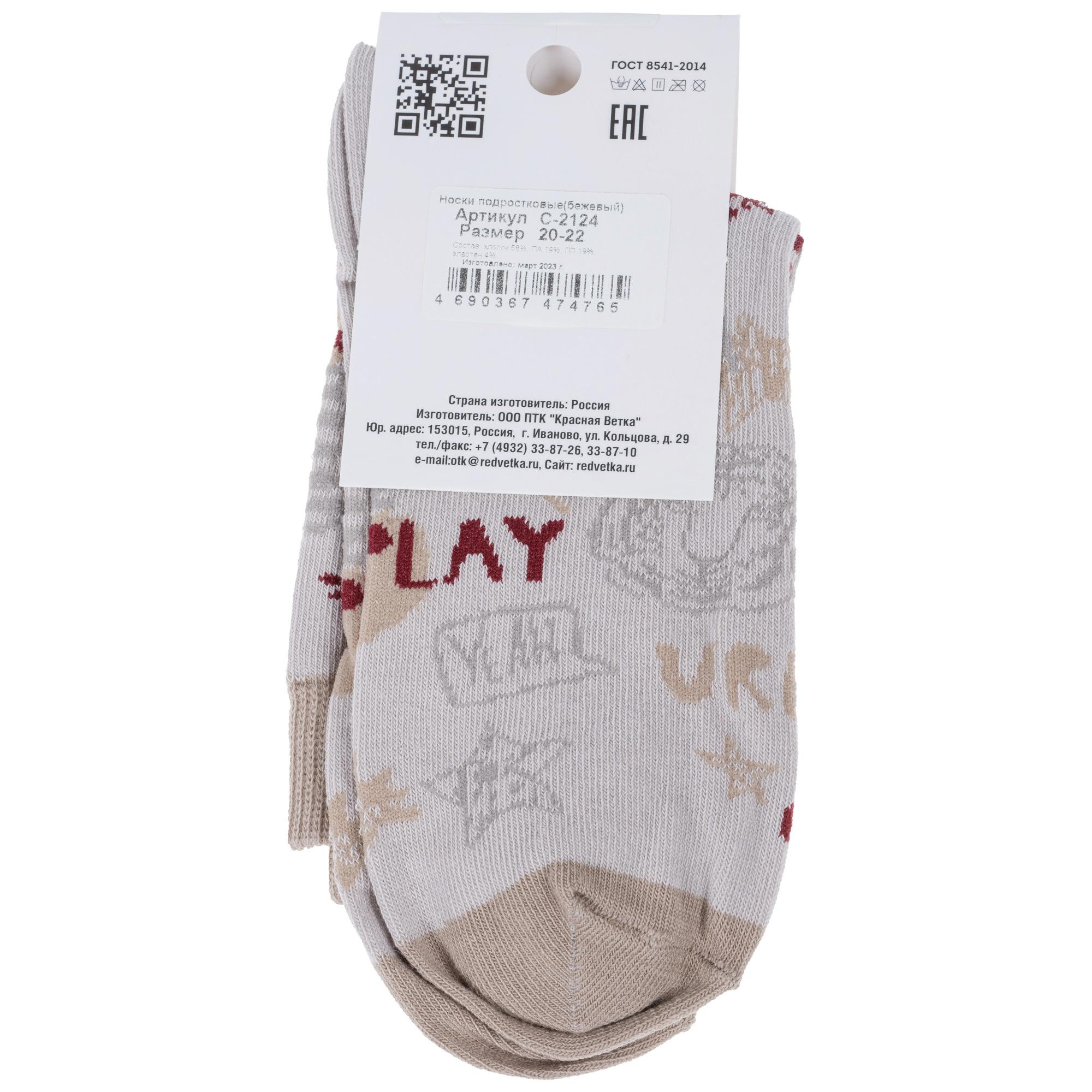 Комплект детских носков из 2 пар, круглогодичные, укороченные, цвет бежевый, прикольные, состав: 58% хлопок, 19% полиамид, 19% полипропилен, 4% эластан, фабричный артикул 2-С-2124. Производитель «КРАСНАЯ ВЕТКА» Россия под брендом «Красная ветка».
