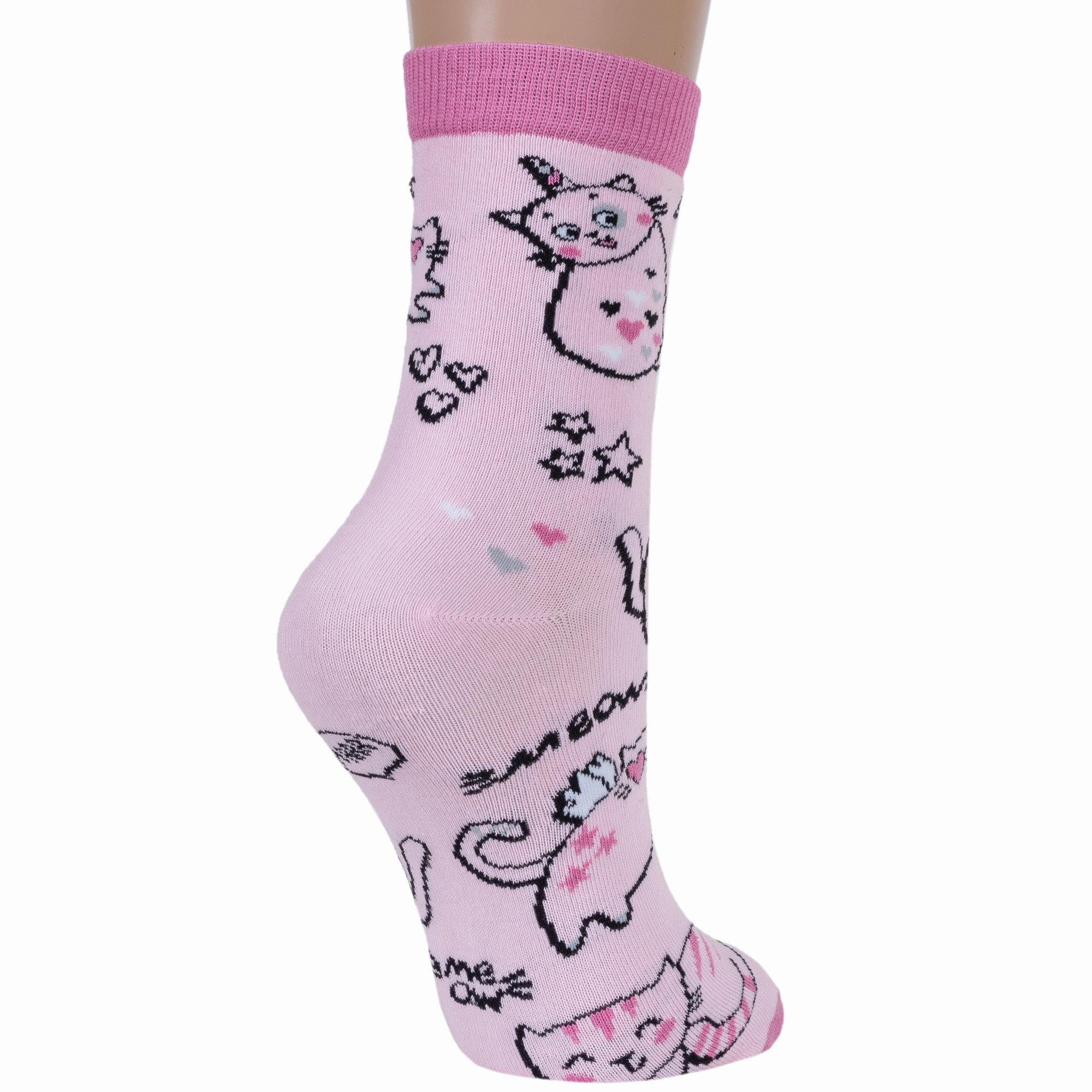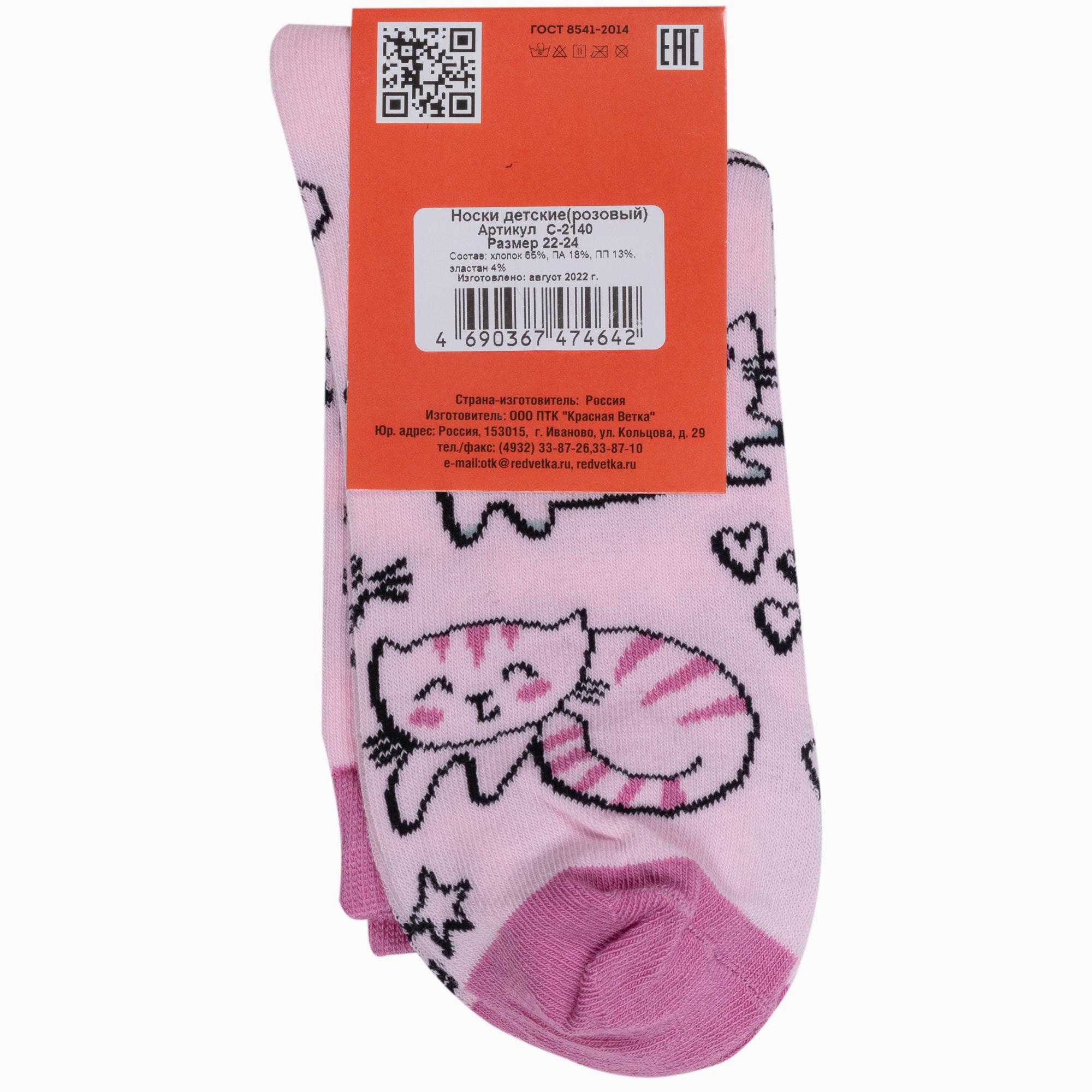 Комплект детских носков из 2 пар, круглогодичные, средней длины, цвет розовый, повседневные, возможно бесшовные, принт (рисунок): животные, с узором, состав: 65% хлопок, 18% полиамид, 13% полипропилен, 4% эластан, арт. 2-С-2140. Производитель «КРАСНАЯ ВЕТКА» Россия под брендом «Красная ветка».