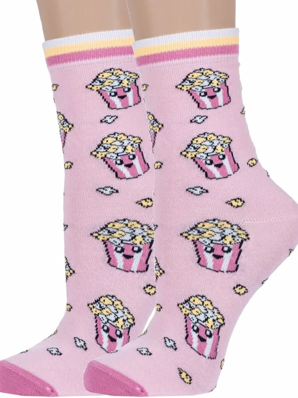 Комплект детских носков из 2 пар, круглогодичные, укороченные, цвет розовый, прикольные, состав: 56% хлопок, 22% полипропилен, 18% полиамид, 4% эластан, фабричный артикул 2-С-2148. Производитель «КРАСНАЯ ВЕТКА» Россия под брендом «Красная ветка».
