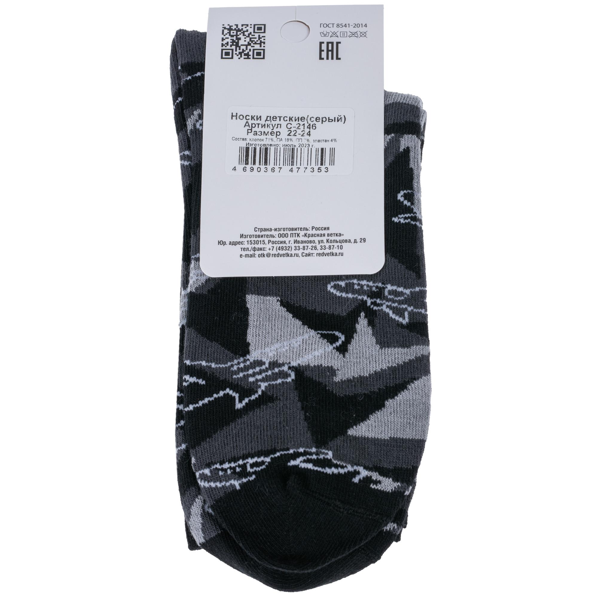 Комплект детских носков из 2 пар, круглогодичные, средней длины, цвет темно-серый, прикольные, состав: 71% хлопок, 18% полиамид, 7% полипропилен, 4% эластан, фабричный артикул 2-С-2146. Производитель «КРАСНАЯ ВЕТКА» Россия под брендом «Красная ветка».