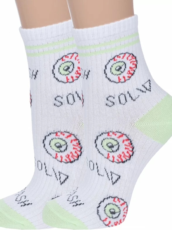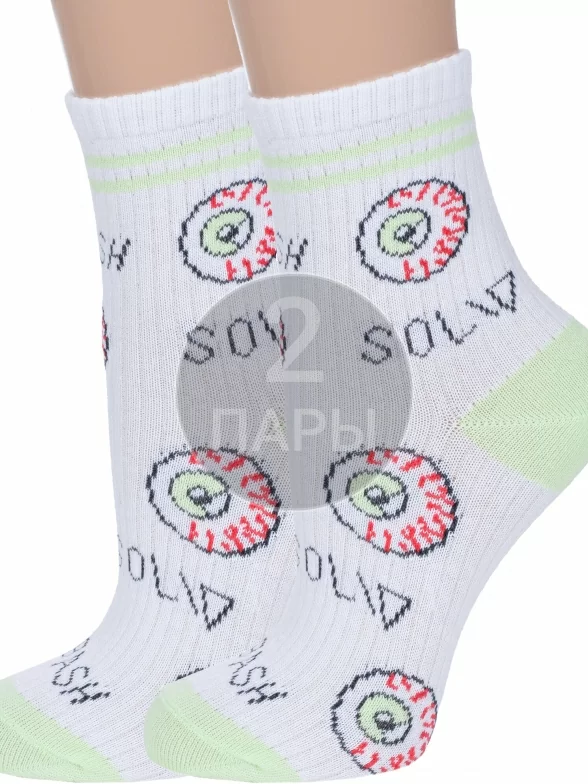 Комплект детских носков из 2 пар, круглогодичные, укороченные, цвет бело-салатовый, прикольные, состав: 70% хлопок, 28% полиэстер, 2% эластан, фабричный артикул 2-2С2349. Производитель «ООО Фабрика Василина, Беларусь» под брендом «Vasilina».