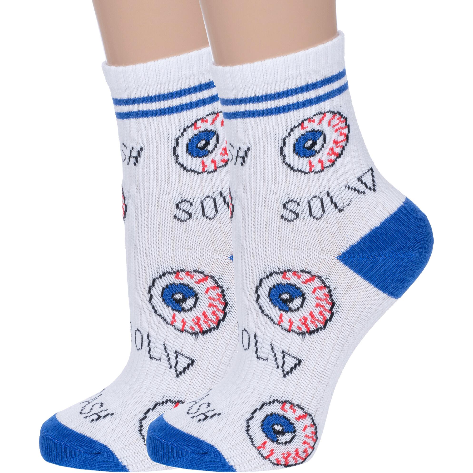 Комплект детских носков из 2 пар, круглогодичные, укороченные, цвет бело-синие, прикольные, состав: 70% хлопок, 28% полиэстер, 2% эластан, фабричный артикул 2-2С2349. Производитель «ООО Фабрика Василина, Беларусь» под брендом «Vasilina».