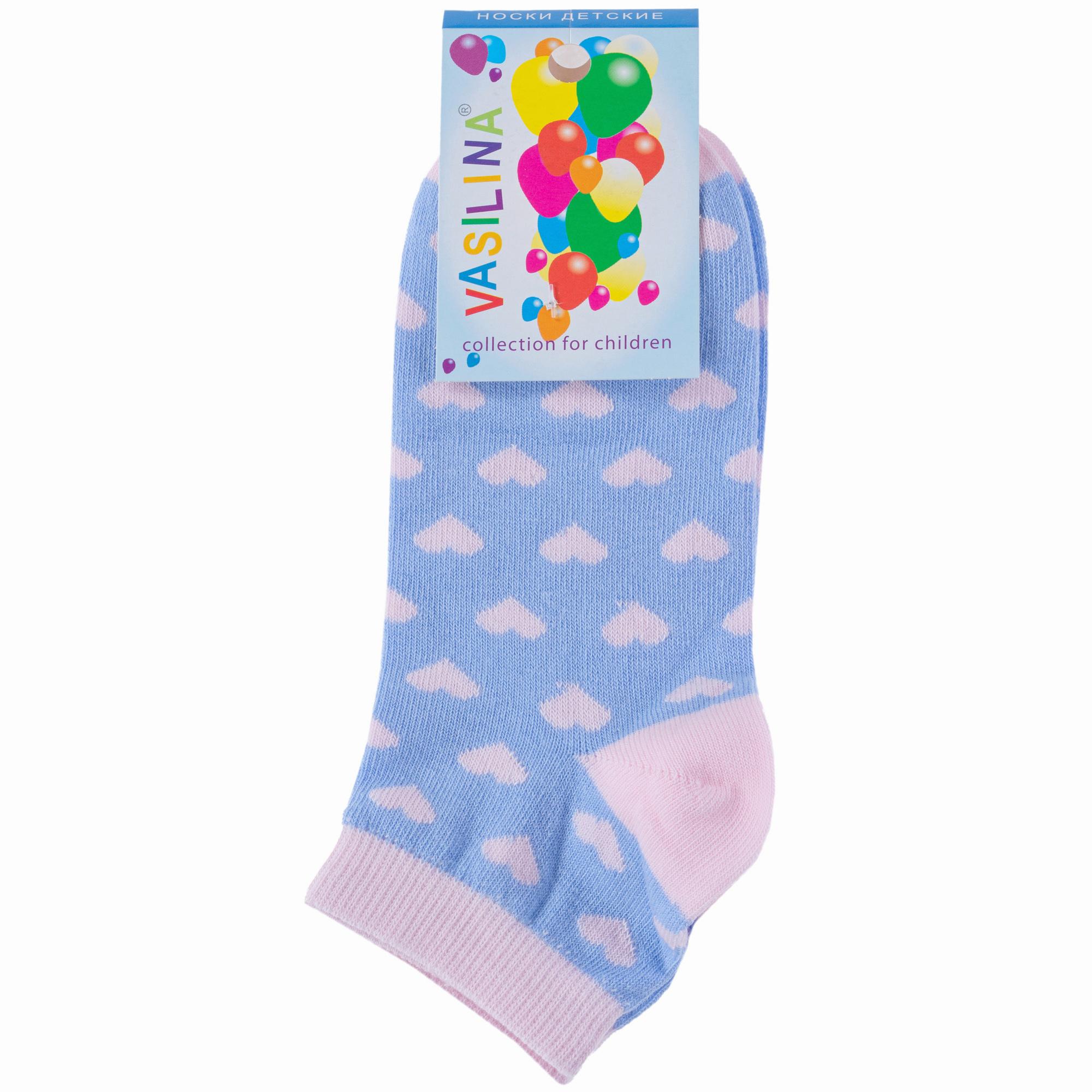 Комплект коротких детских носков бренда VASILINA с принтом в виде сердечек. Подойдут девочкам для прогулок и школы в демисезонный период.