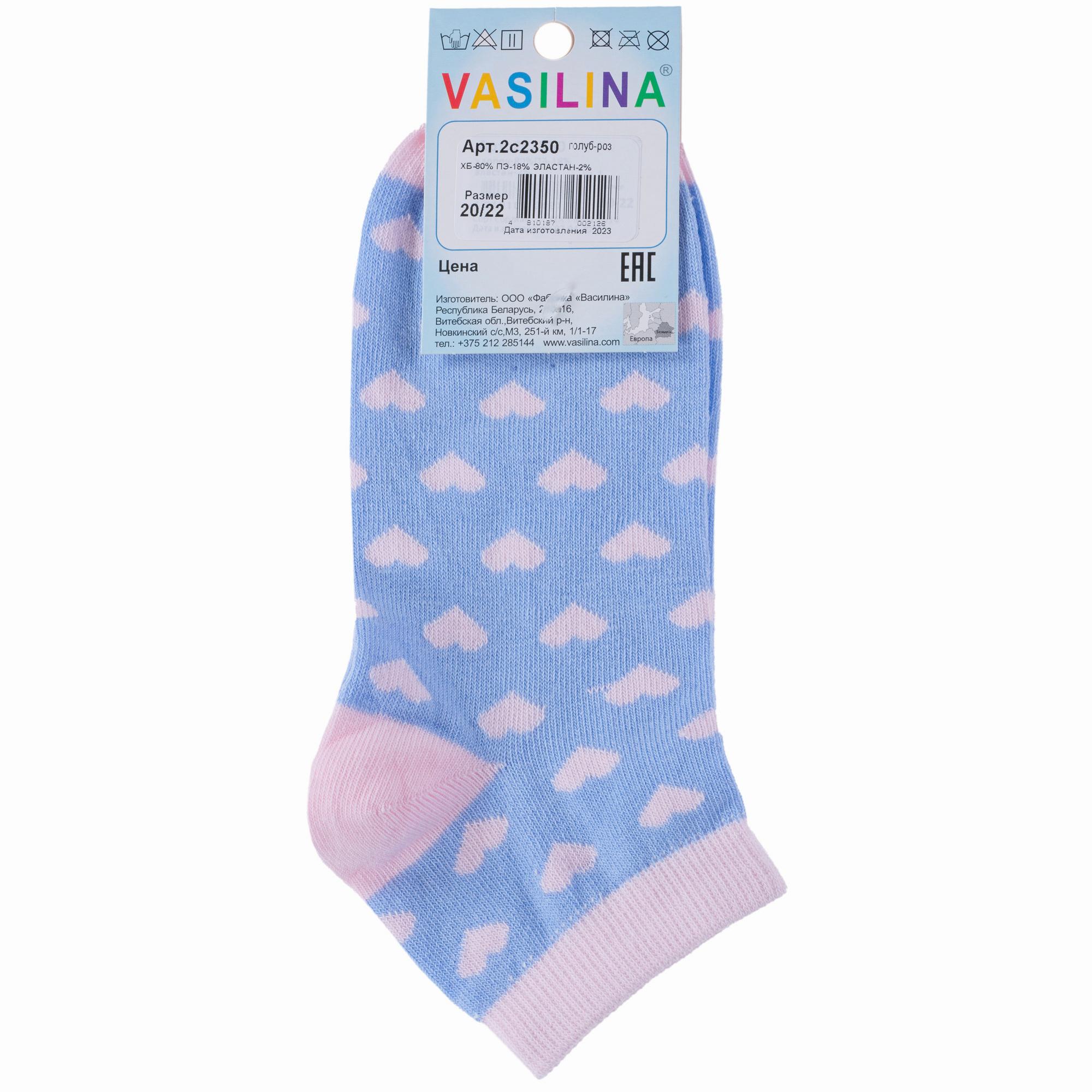 Комплект из 2 пар детских носков VASILINA 2-2С2350, ГОЛУБЫЕ с розовым