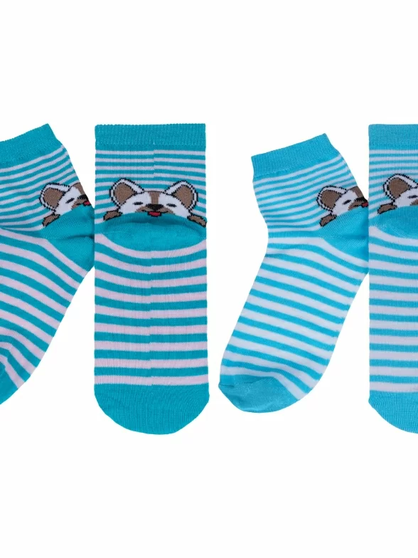 Комплект детских носков бренда VASILINA: с принтом в полоску и изображением собачки над пяткой. Подойдут мальчикам и девочкам для прогулок и детского сада в демисезонный период.