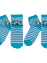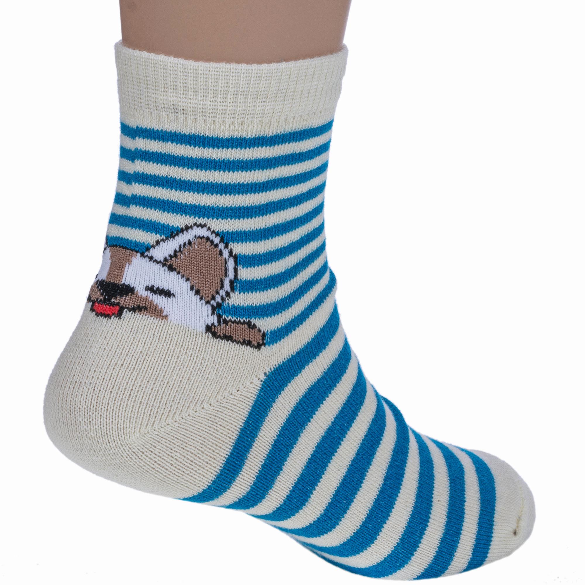Укороченная модель в полоску с изображением собачки над пяткой; имеет двойной борт (манжет резинки) и обычный, с ощутимым уплотнением, шов на мыске. Изготовлены на фабрике в Беларуси из хлопка с добавлением полиэстера и эластана для износостойкости изделия и комфортной посадки.