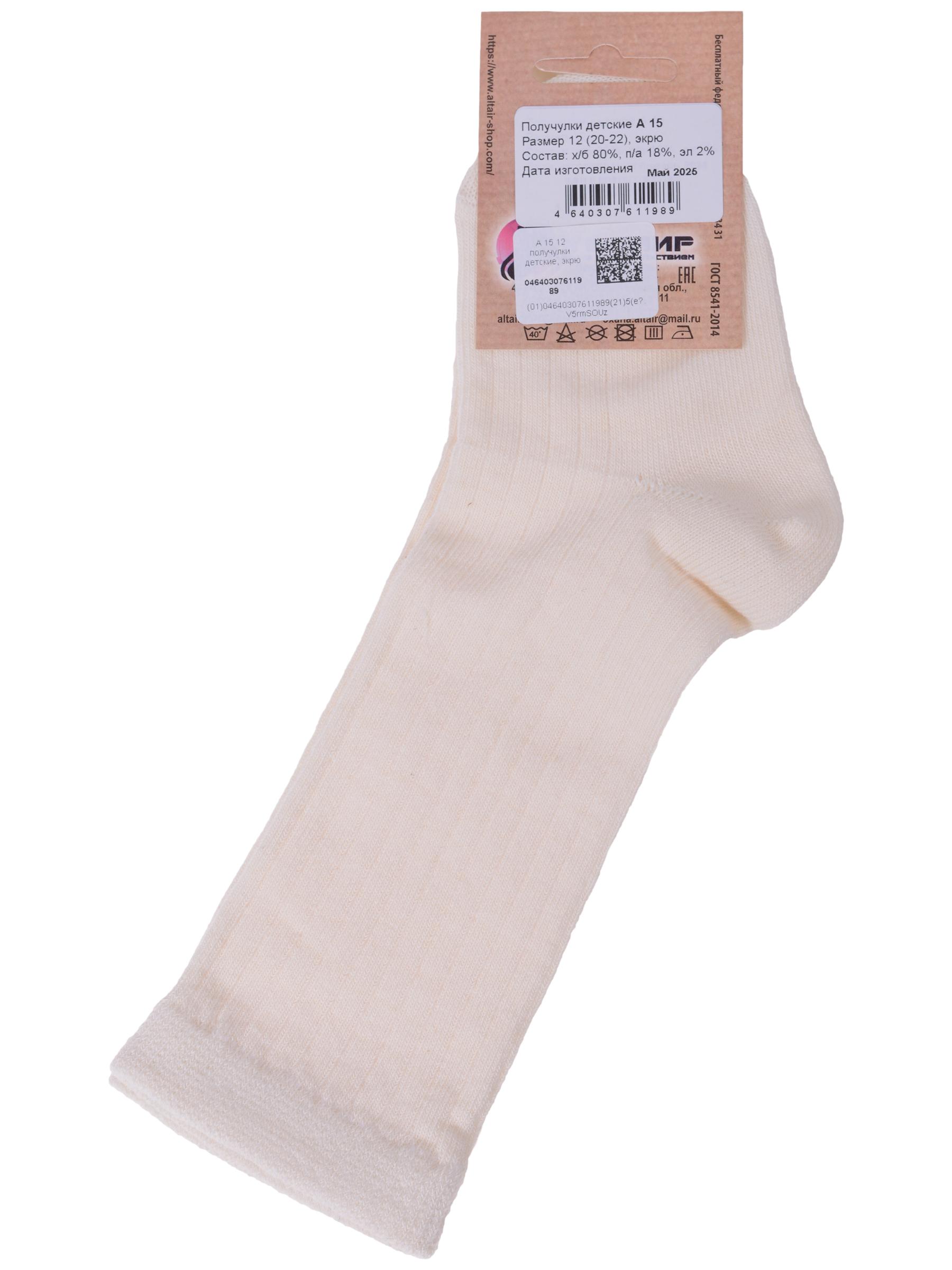 Комплект детских гольфов из 2 пар, круглогодичные, цвет экрю, классические, шов обычный (не бесшовные), принт (рисунок): в рубчик, однотонный, состав: 80% хлопок, 18% полиамид, 2% эластан, арт. 2-А15. Производитель «ООО Альтаир, г. Орск, Оренбургская обл, Россия» под брендом «Альтаир».