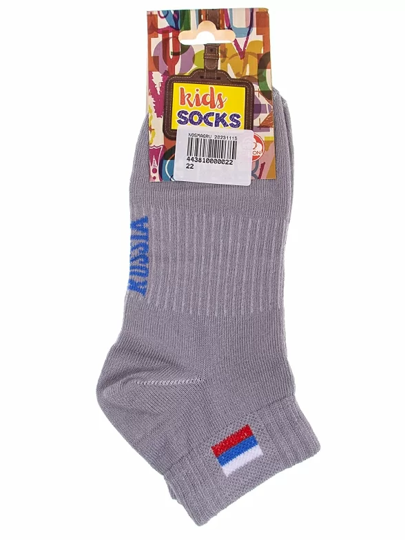 Комплект детских носков из 2 пар, круглогодичные, укороченные, цвет серый, спортивные, шов обычный (не бесшовные), принт (рисунок): однотонный, небольшой рисунок, состав: 80% хлопок, 18% полиамид, 2% эластан, арт. 2-С200. Производитель «ООО Альтаир, г. Орск, Оренбургская обл, Россия» под брендом «Альтаир».