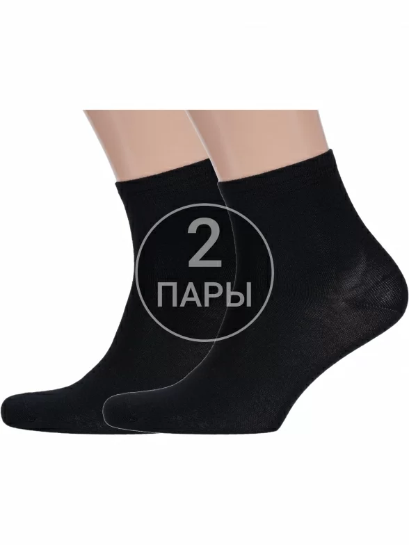 Комплект мужских носков из 2 пар, летние, укороченные, цвет черный, классические, шов кеттельный (бесшовная технология), принт (рисунок): однотонный, без рисунков/узоров, состав: 85% бамбук, 15% полиамид, арт. 2-X-1124. Производитель «ХОХ» Россия под брендом «Хох».