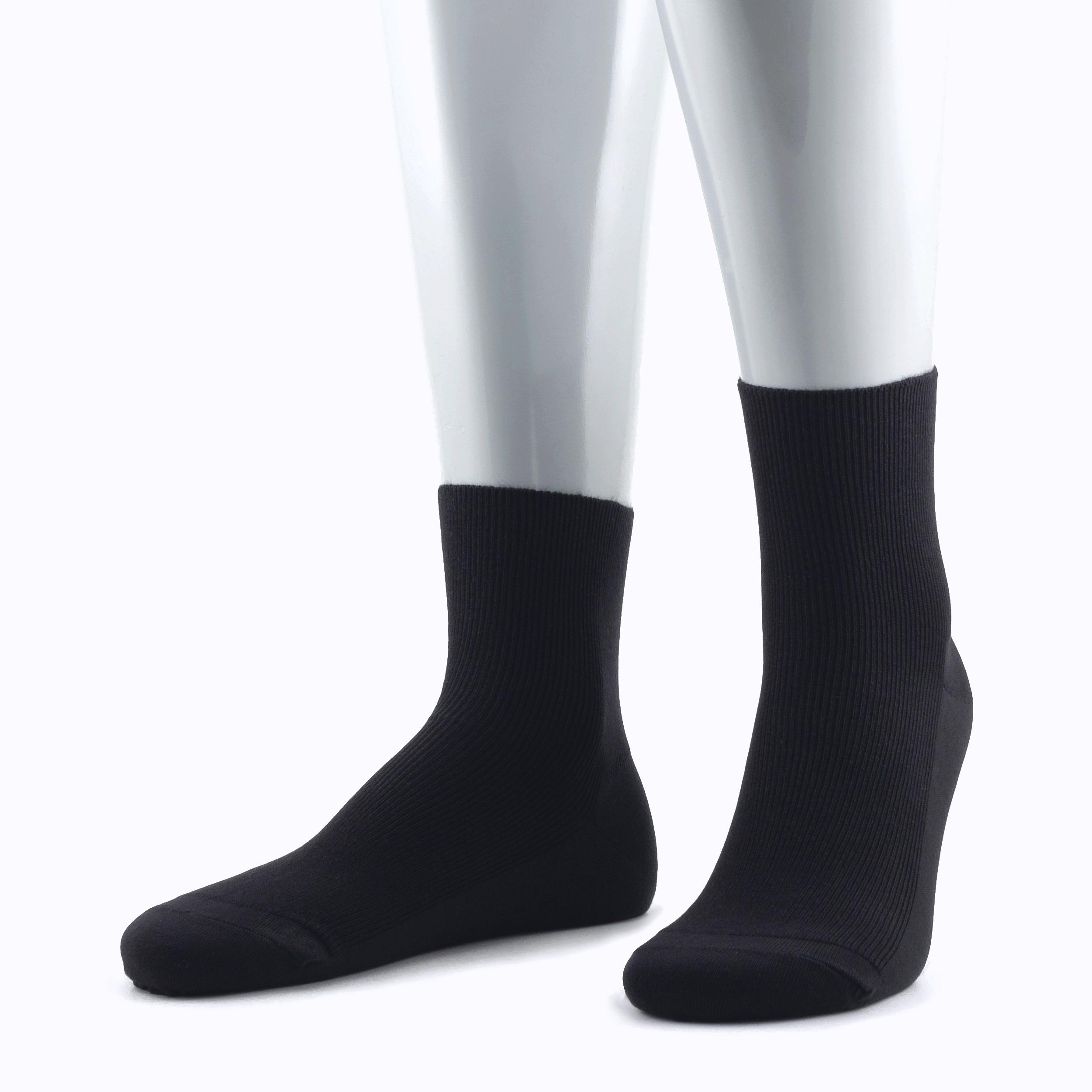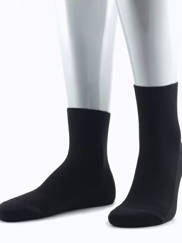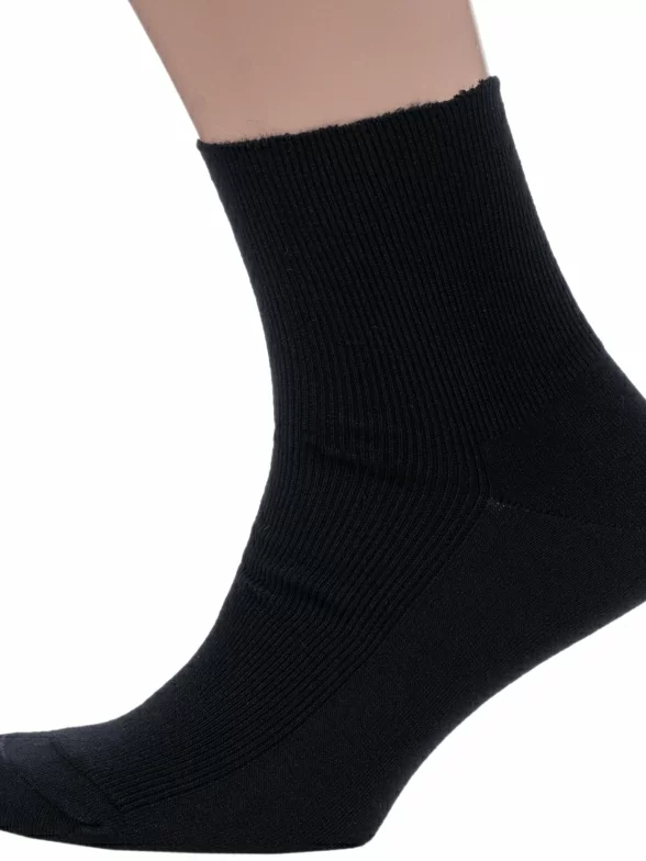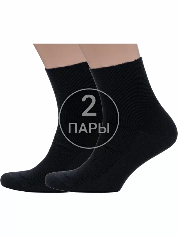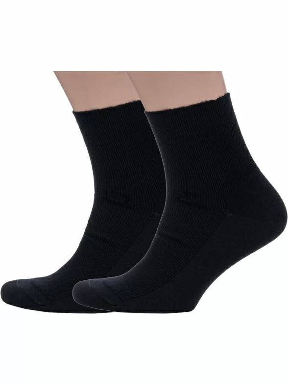 Комплект мужских носков из 2 пар, круглогодичные, укороченные, цвет черный, медицинские, шов плоский, принт (рисунок): в рубчик, однотонный, состав: 98% хлопок, 2% эластан, арт. 2-16DF1. Производитель «PINGONS SIA, Латвия» под брендом «Pingons (dr. Feet)».