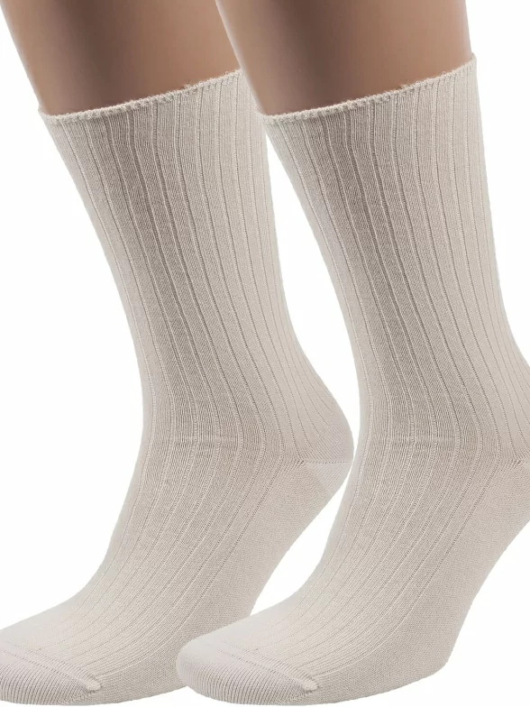 Комплект мужских носков из 2 пар, круглогодичные, средней длины, цвет бежевый, медицинские, возможно бесшовные, принт (рисунок): в рубчик, однотонный, состав: 80% хлопок, 15% полиамид, 5% эластан, арт. 2-X-201. Производитель «ХОХ» Россия под брендом «Хох».