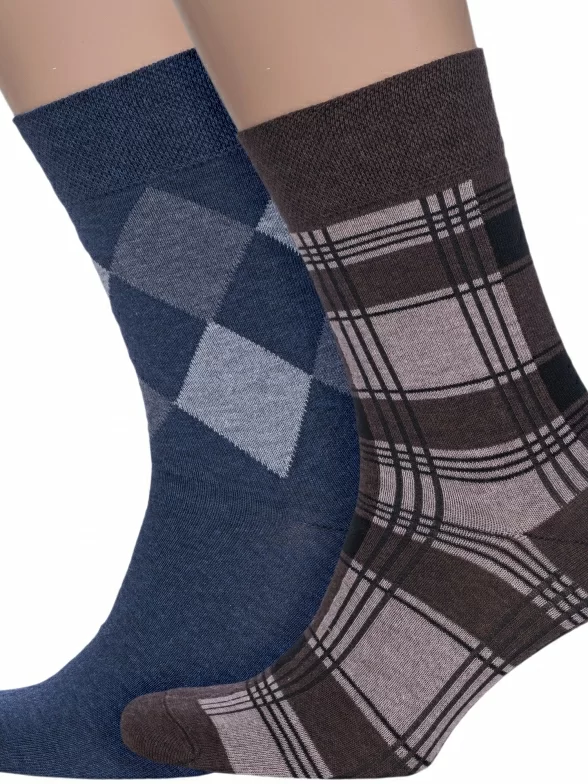 В комплект входят 2 пары носков арт. 15С2125: по 1 паре темно-синих меланжевых с узором "аргайл" и темно-коричневых меланжевых в крупную клетку. Поставляются с индивидуальными фабричными этикетками в обычном или курьер-пакете.