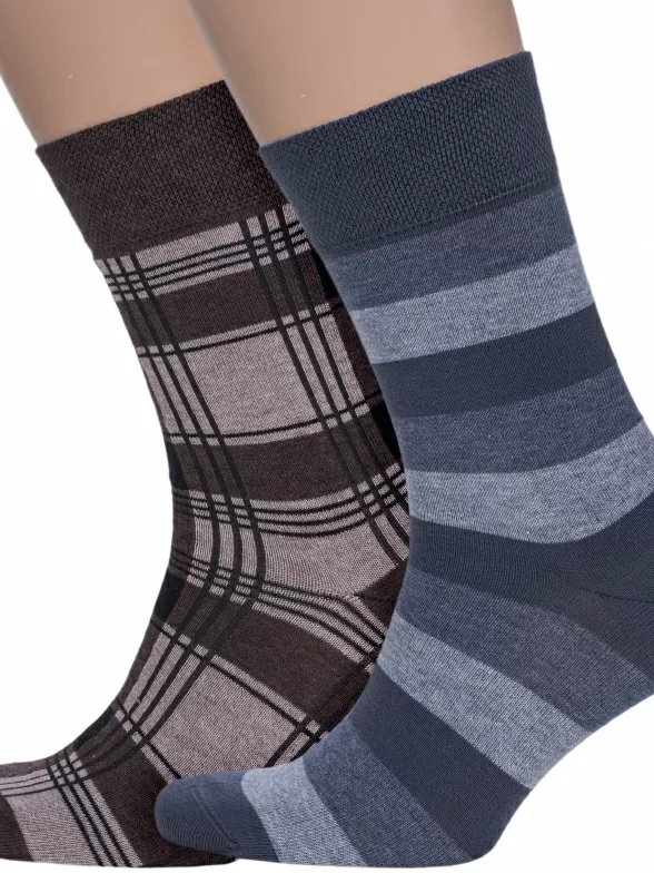 В комплект входят 2 пары носков арт. 15С2125: по 1 паре темно-коричневых меланжевых в крупную клетку и темно-серых в полоску. Поставляются с индивидуальными фабричными этикетками в обычном или курьер-пакете.
