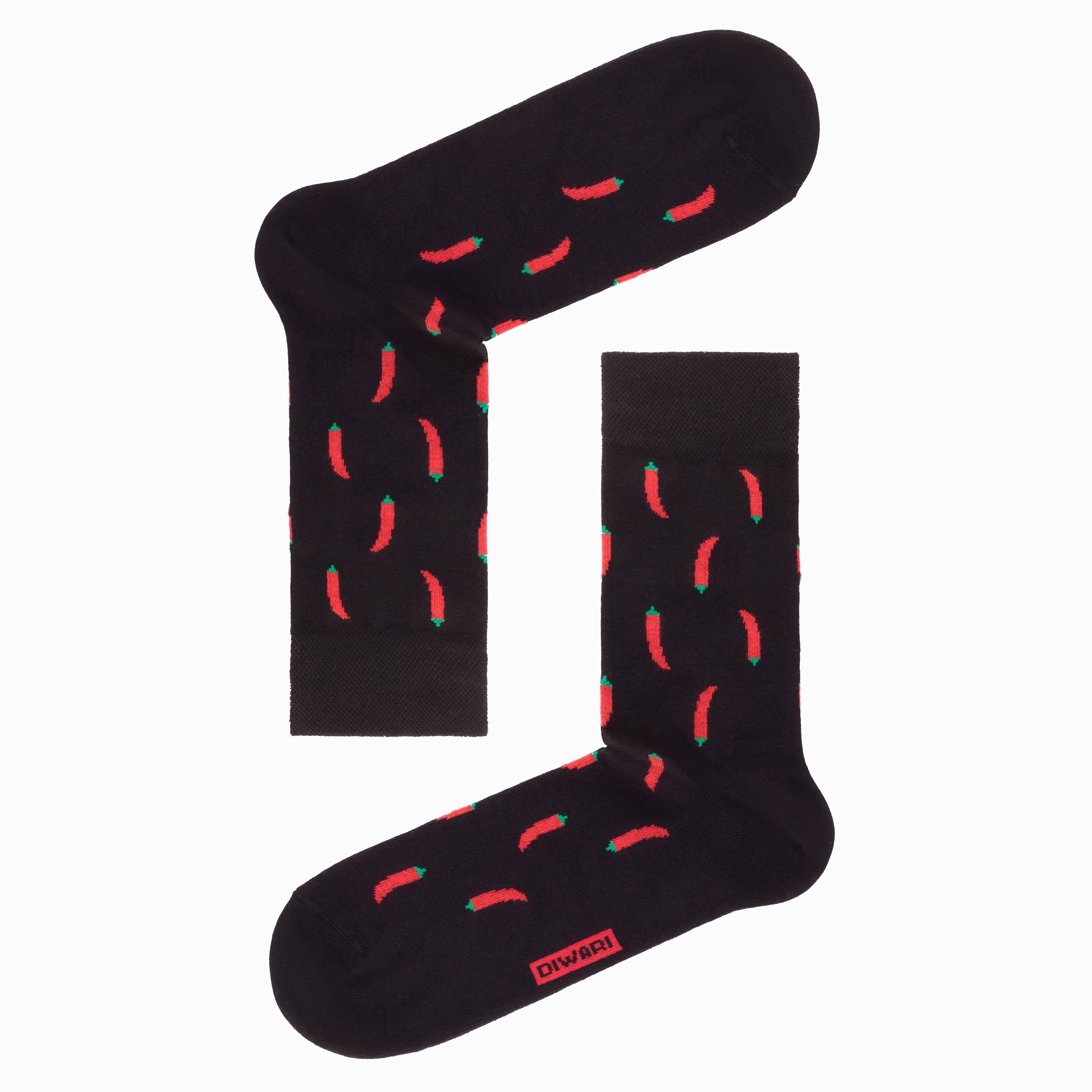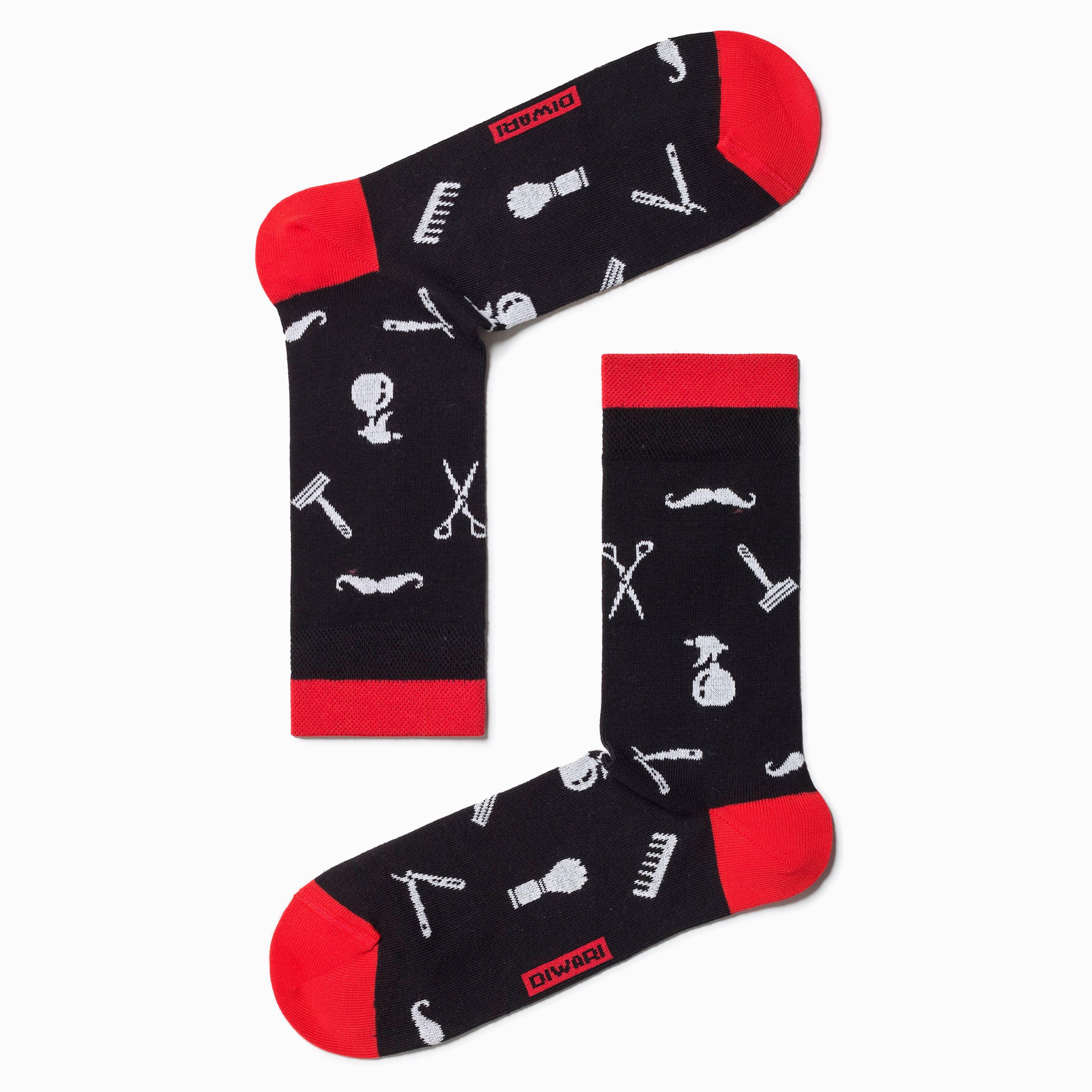 В комплект входят 2 пары носков черного цвета арт. 17С-151СП: по 1 паре со жгучими перцами и с узором на тему барберинга (все о мужских стрижках, уходе за усами и бородой). Поставляются с индивидуальными фабричными этикетками в обычном или курьер-пакете.