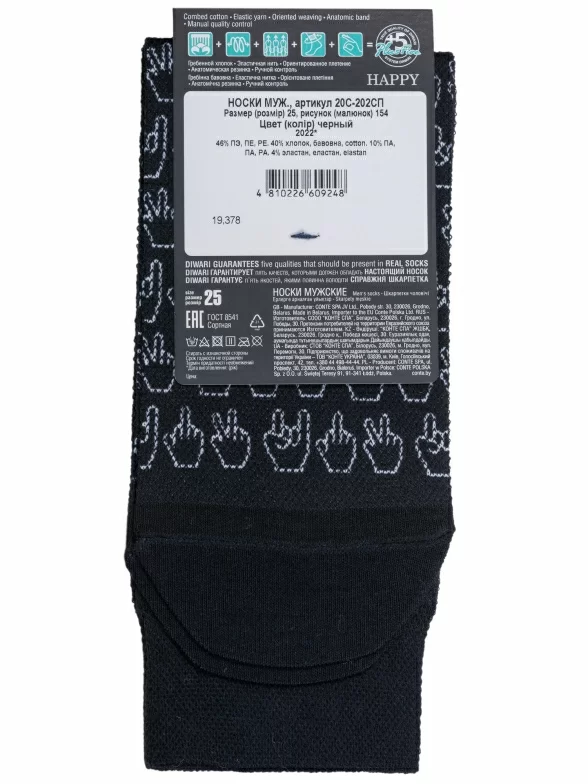 В комплект входит 2 пары черных носков артикула 20С-202СП с индивидуальными фабричными этикетками.