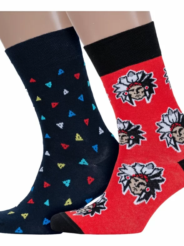 В комплект входят 2 пары носков арт. 20С-37СП: по 1 паре темно-синих с разноцветными треугольниками и красных с индейцами. Поставляются с индивидуальными фабричными этикетками в обычном или курьер-пакете.