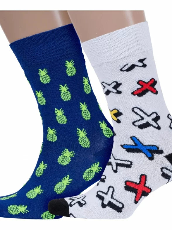 В комплект входят 2 пары носков арт. 20С-37СП: по 1 паре синих с ананасами и белых с крестиками. Поставляются с индивидуальными фабричными этикетками в обычном или курьер-пакете.