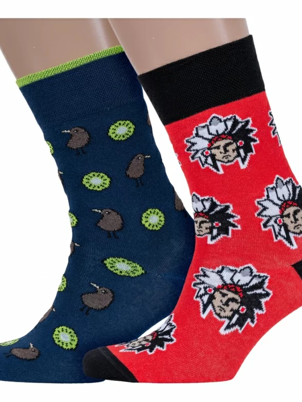 В комплект входят 2 пары носков арт. 20С-37СП: по 1 паре темно-синих с киви и красных с индейцами. Поставляются с индивидуальными фабричными этикетками в обычном или курьер-пакете.