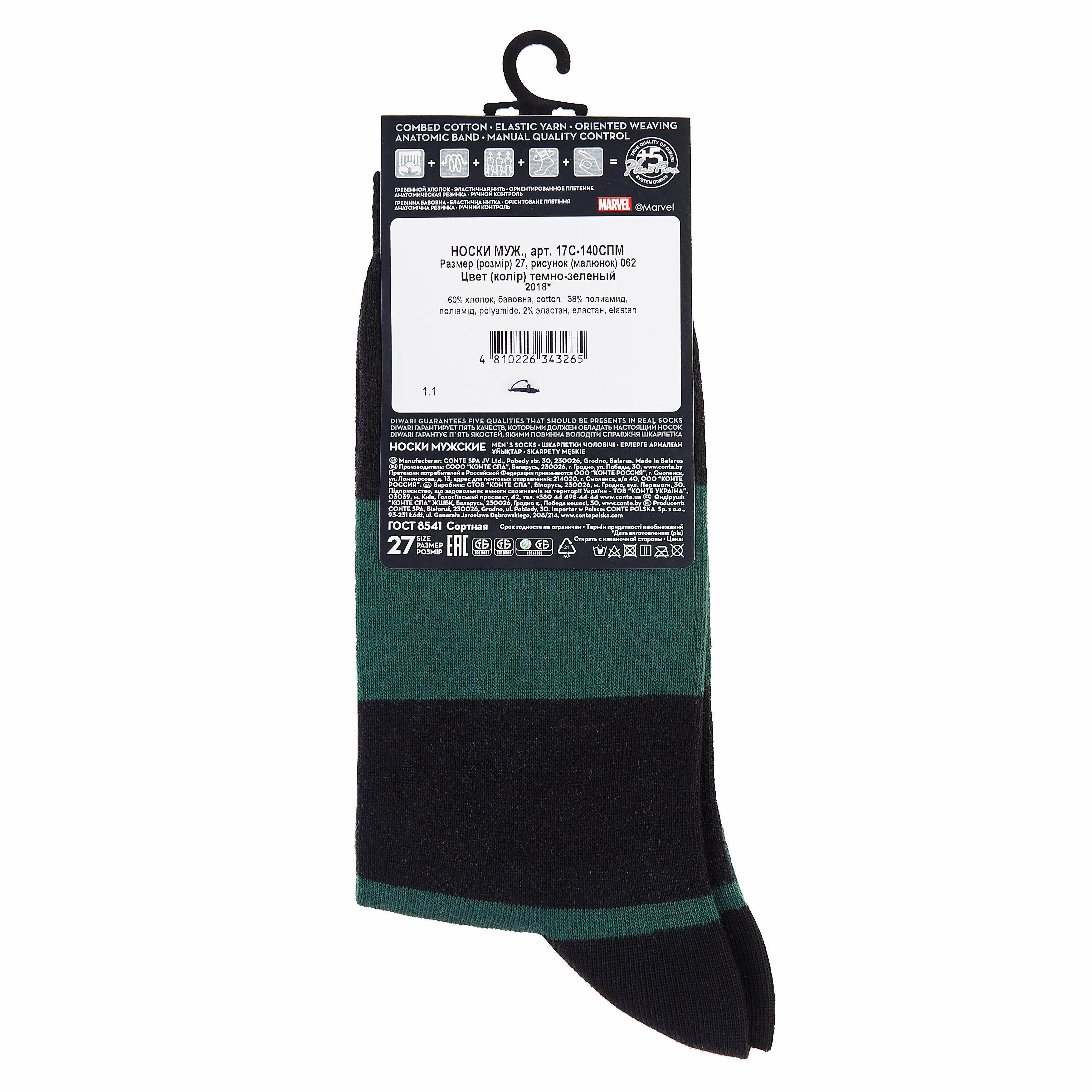 В комплект входят 2 одинаковые пары носков темно-зеленого цвета арт. 17С-140СПМ, поставляются с индивидуальными фабричными этикетками в обычном или курьер-пакете.