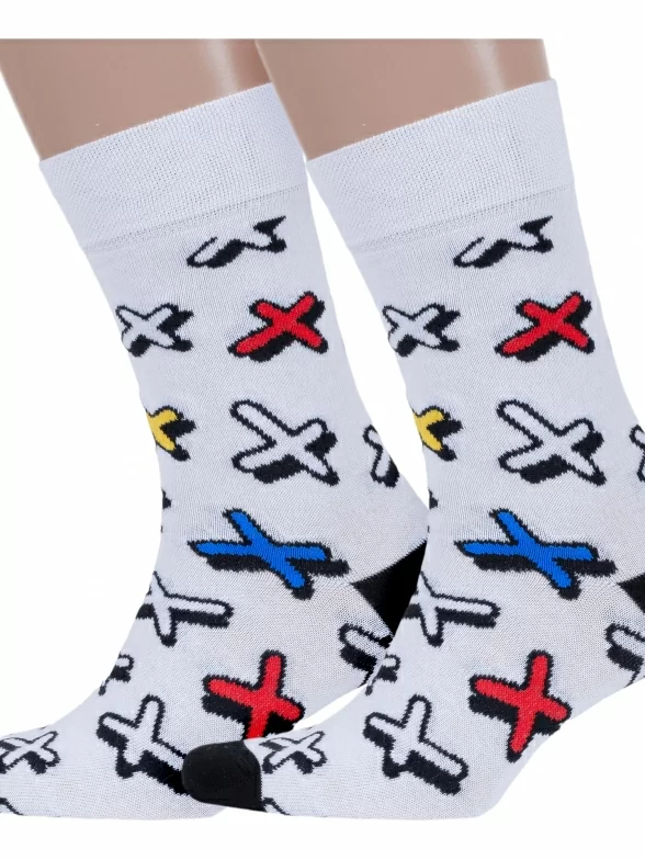 Комплект мужских носков с принтом в виде разноцветных крестиков.