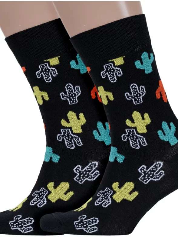 Комплект мужских носков с принтом в виде разноцветных кактусов.