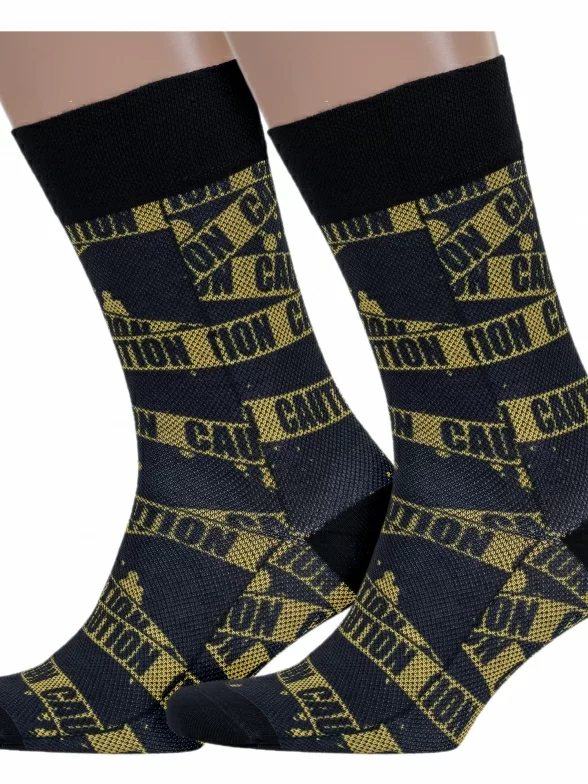 Комплект мужских носков с принтом в виде сигнальной ленты с надписью на английском языке "Осторожно".
