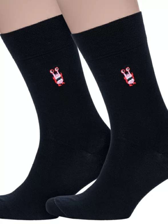 Комплект мужских носков с объемной вышивкой в виде монстра на паголенке.