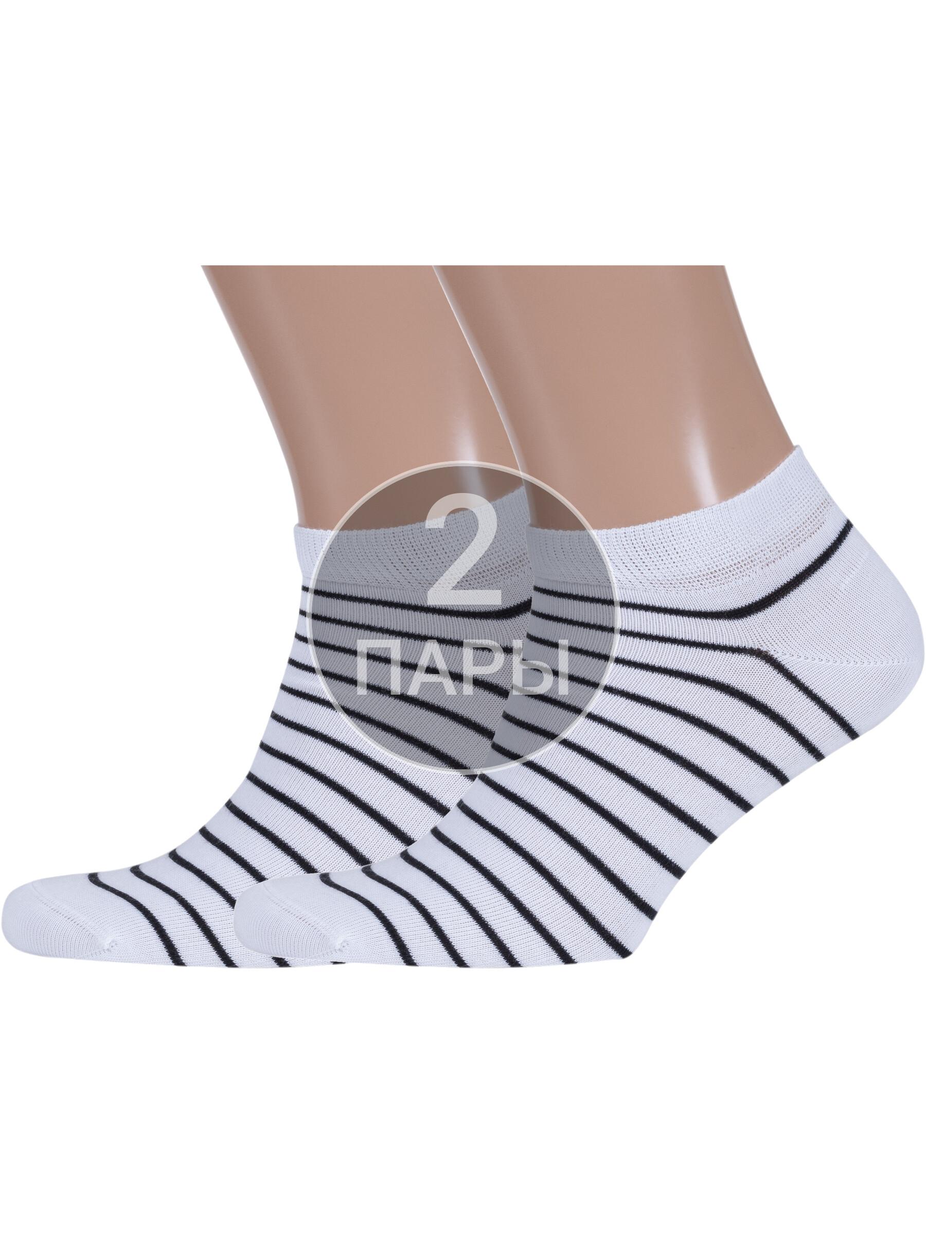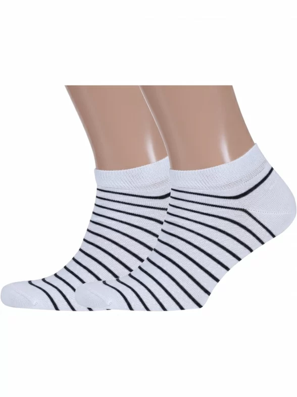 Комплект мужских носков из 2 пар, летние, короткие, цвет бело-черный, спортивные, классические, возможно бесшовные, принт (рисунок): полоски, с узором, состав: 80% хлопок, 15% полиамид, 5% эластан, арт. 2-SPM-177. Производитель «ХОХ» Россия под брендом «Хох».