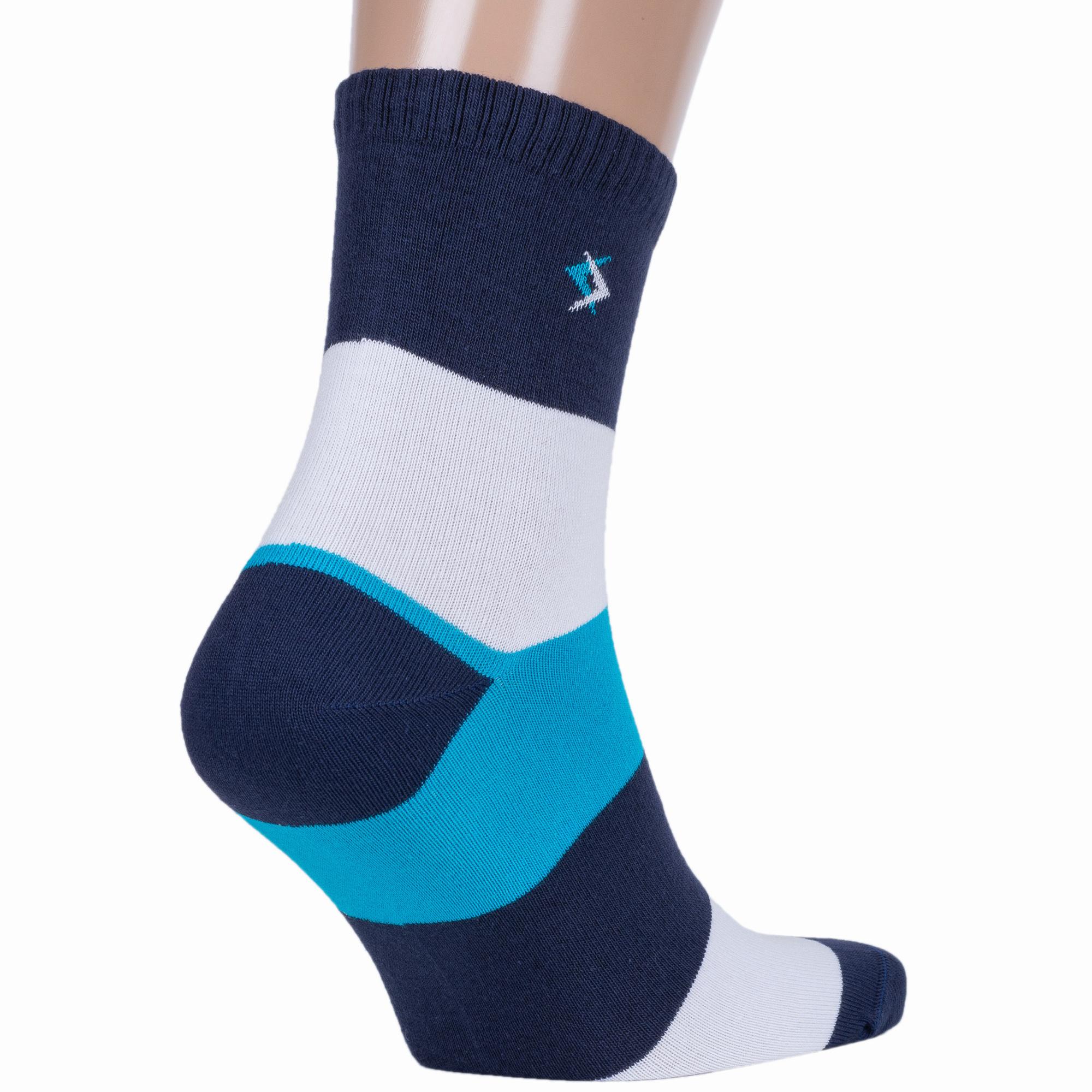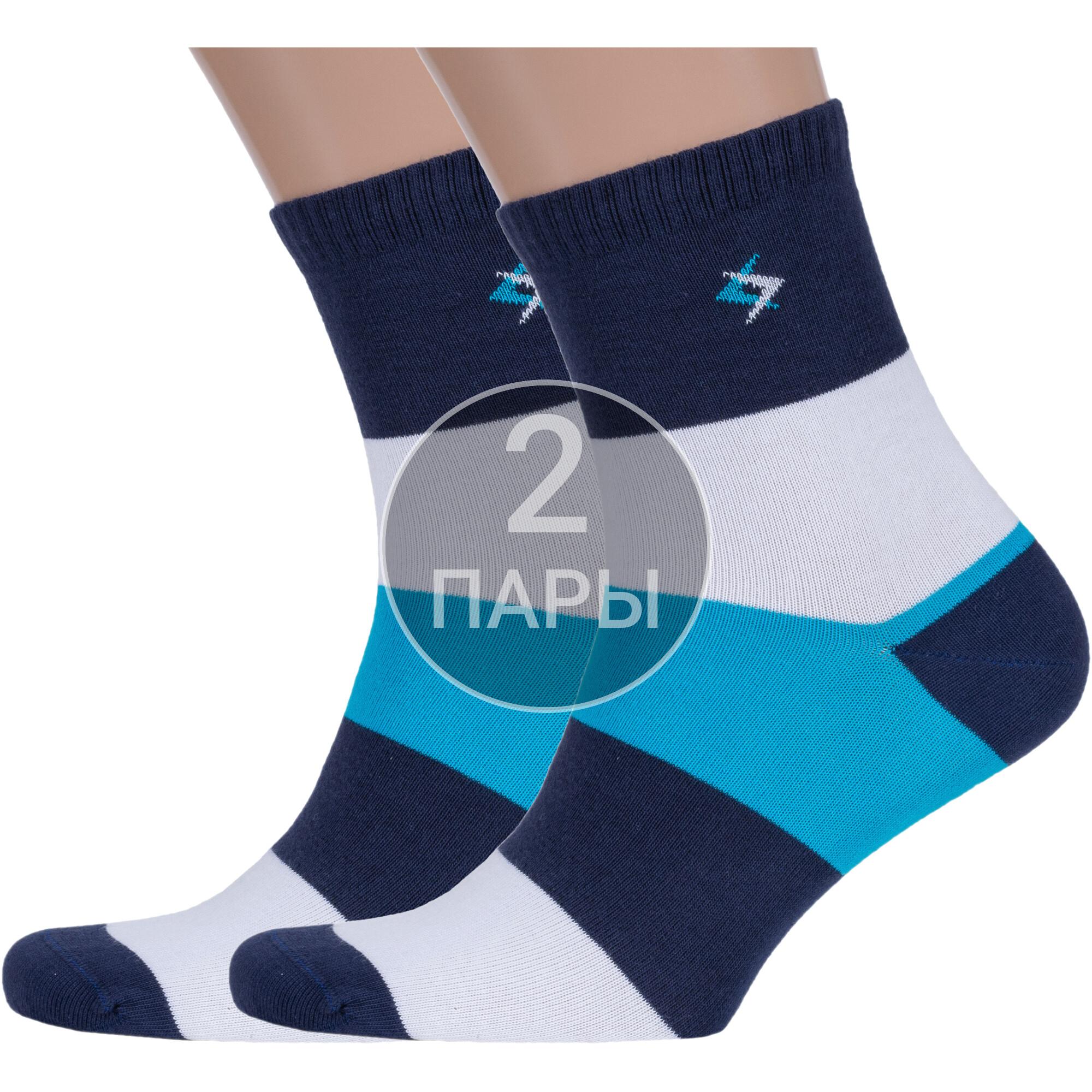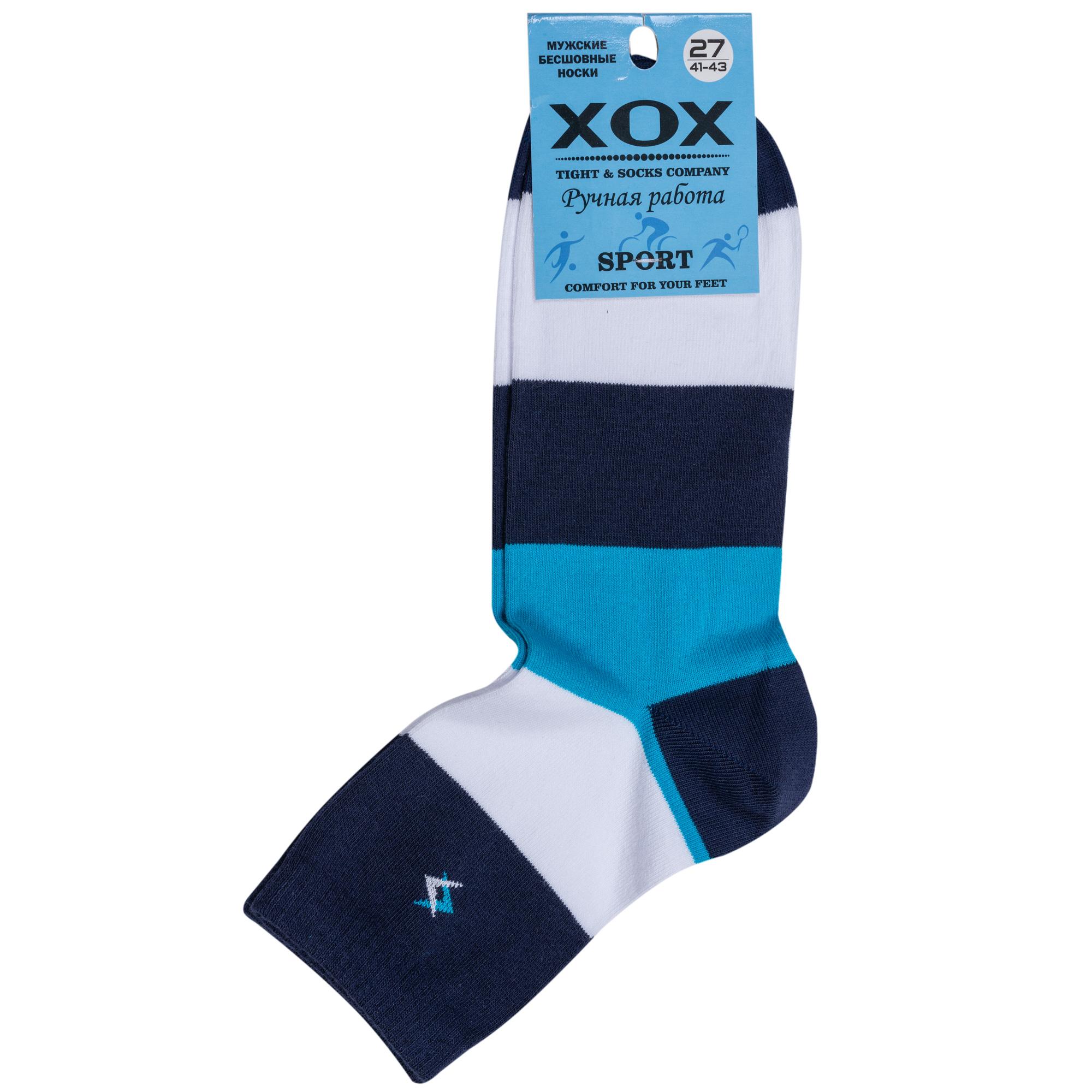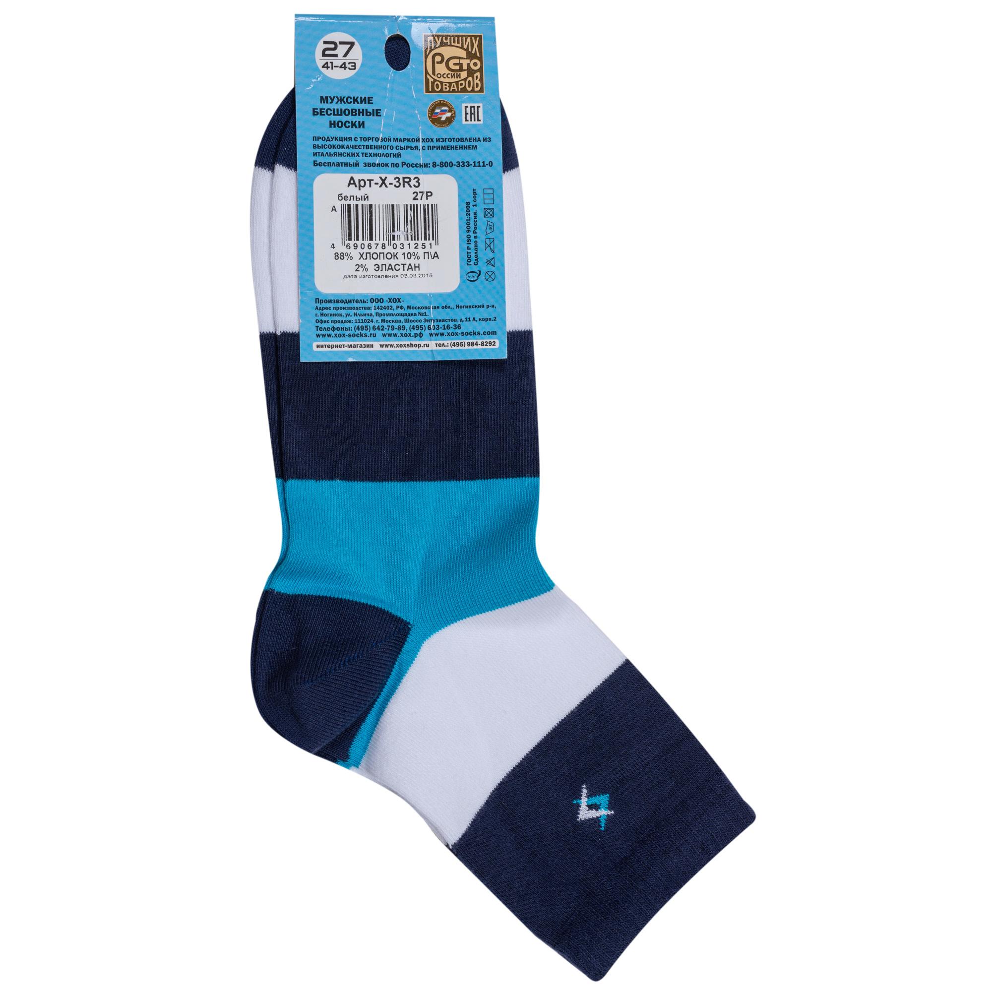 Комплект мужских носков из 2 пар, круглогодичные, укороченные, цвет белый, спортивные, повседневные, возможно бесшовные, принт (рисунок): полоски, с узором, состав: 88% хлопок, 10% полиамид, 2% эластан, арт. 2-X-3R3. Производитель «ХОХ» Россия под брендом «Хох».
