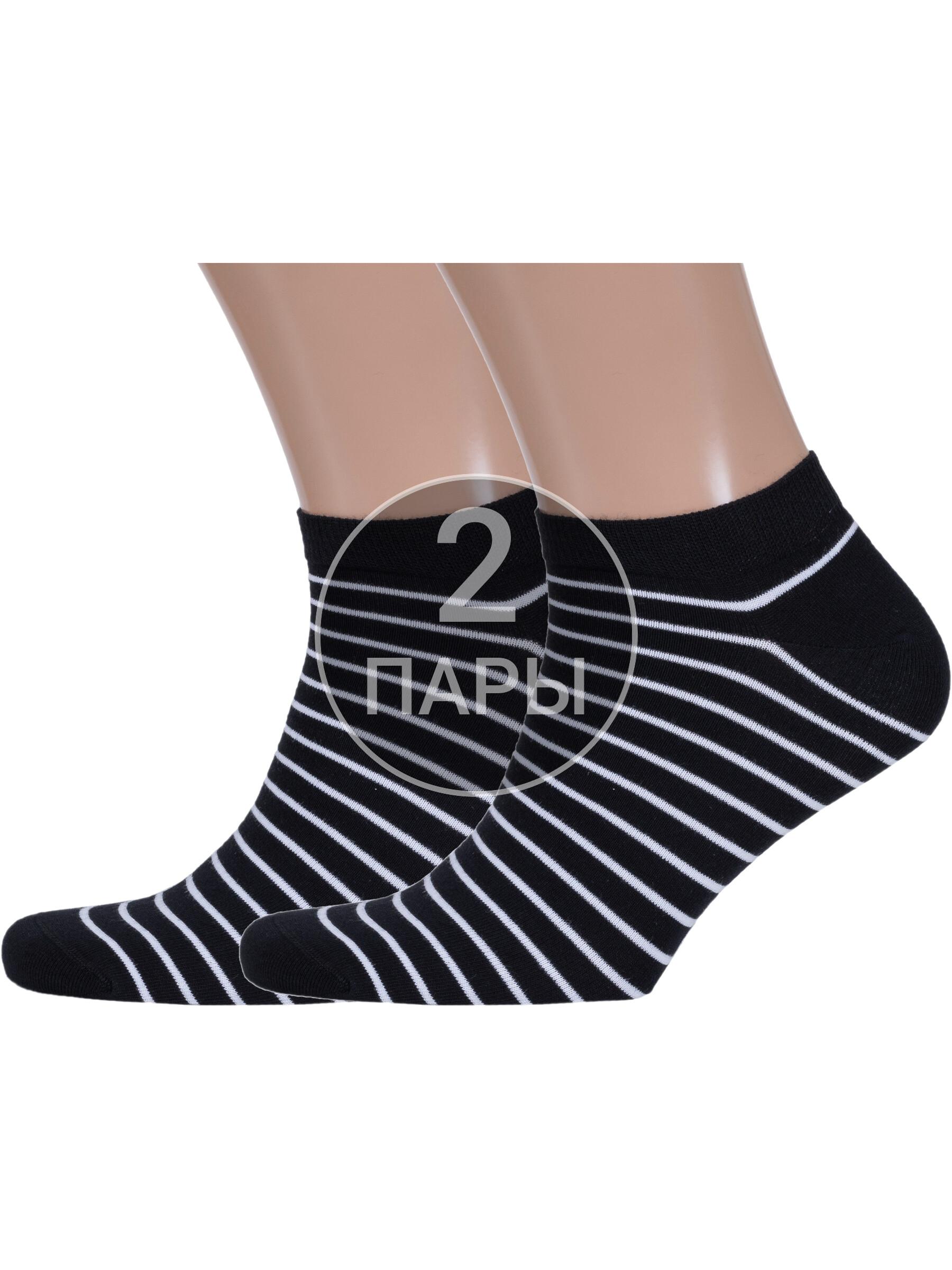 Комплект мужских носков из 2 пар, летние, короткие, цвет черно-белый, спортивные, классические, возможно бесшовные, принт (рисунок): полоски, с узором, состав: 80% хлопок, 15% полиамид, 5% эластан, арт. 2-SPM-177. Производитель «ХОХ» Россия под брендом «Хох».