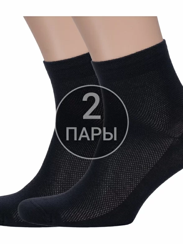 Комплект мужских носков из 2 пар, летние, укороченные, цвет черный, в сеточку, шов кеттельный (бесшовная технология), принт (рисунок): однотонный, без рисунков/узоров, состав: 85% хлопок, 15% полиамид, арт. 2-X-1128. Производитель «ХОХ» Россия под брендом «Хох».
