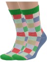 Комплект носков унисекс из 2 пар, круглогодичные, средней длины, цвет зелено-синие, повседневные, возможно бесшовные, принт (рисунок): геометрия, с узором, клетка, состав: 88% хлопок, 10% полиамид, 2% эластан, арт. 2-XF-55. Производитель «ХОХ FANTASY» Россия под брендом «Хох fantasy».