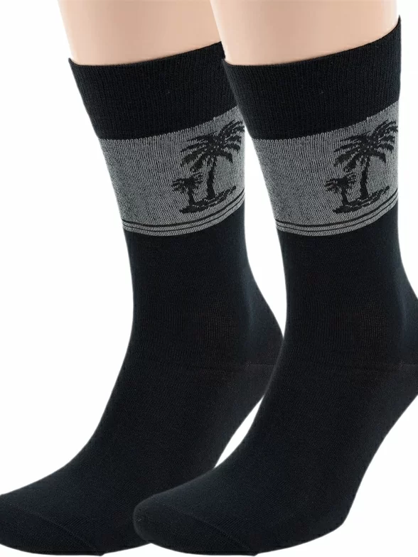 Комплект мужских носков из 2 пар, межсезонные или летние, средней длины, цвет черный, повседневные, возможно бесшовные, принт (рисунок): цветы / растения, путешествия, с узором, состав: 85% вискоза, 15% полиамид, арт. 2-X-1202. Производитель «ХОХ» Россия под брендом «Хох».