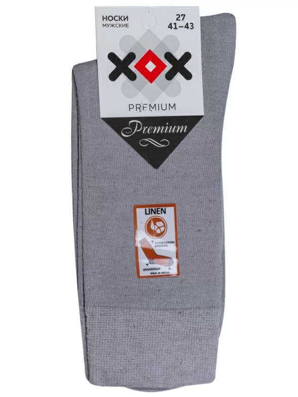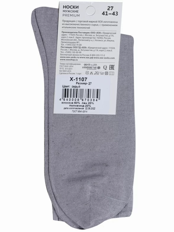 Комплект мужских носков из 2 пар, летние, средней длины, цвет серый, классические, шов плоский, принт (рисунок): без рисунков/узоров, однотонный, состав: 60% вискоза, 20% лен, 20% полиамид, арт. 2-X-1107. Производитель «ХОХ» Россия под брендом «Хох».