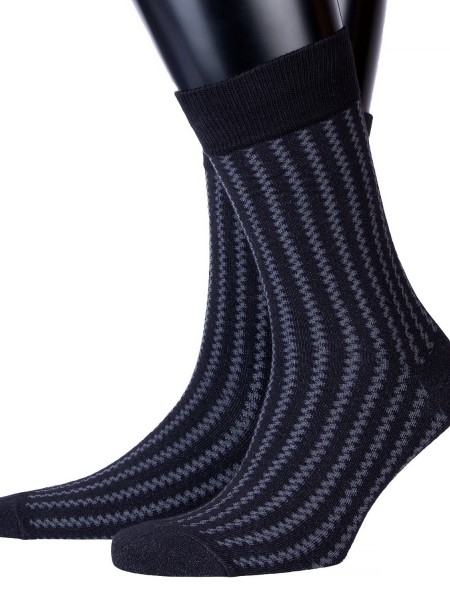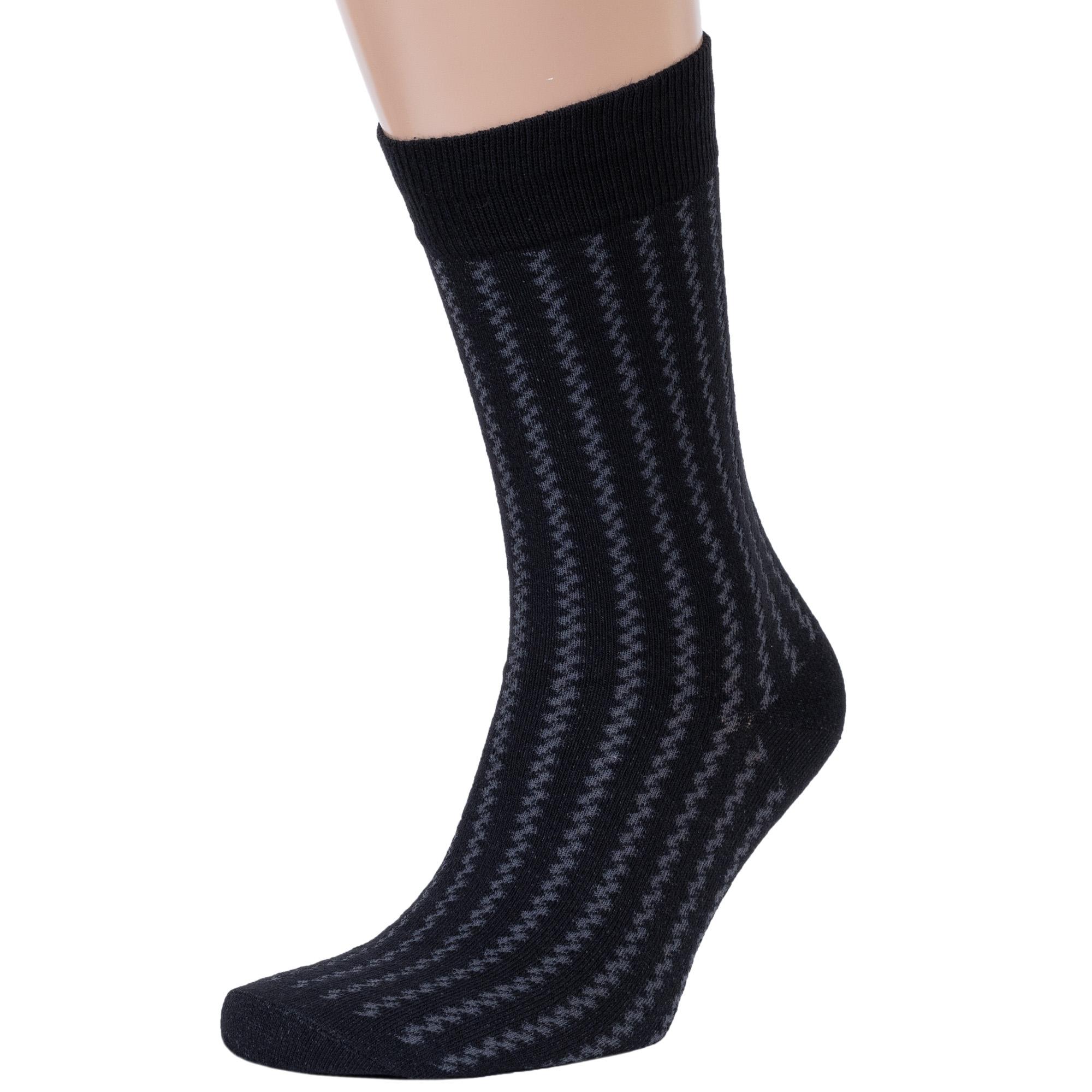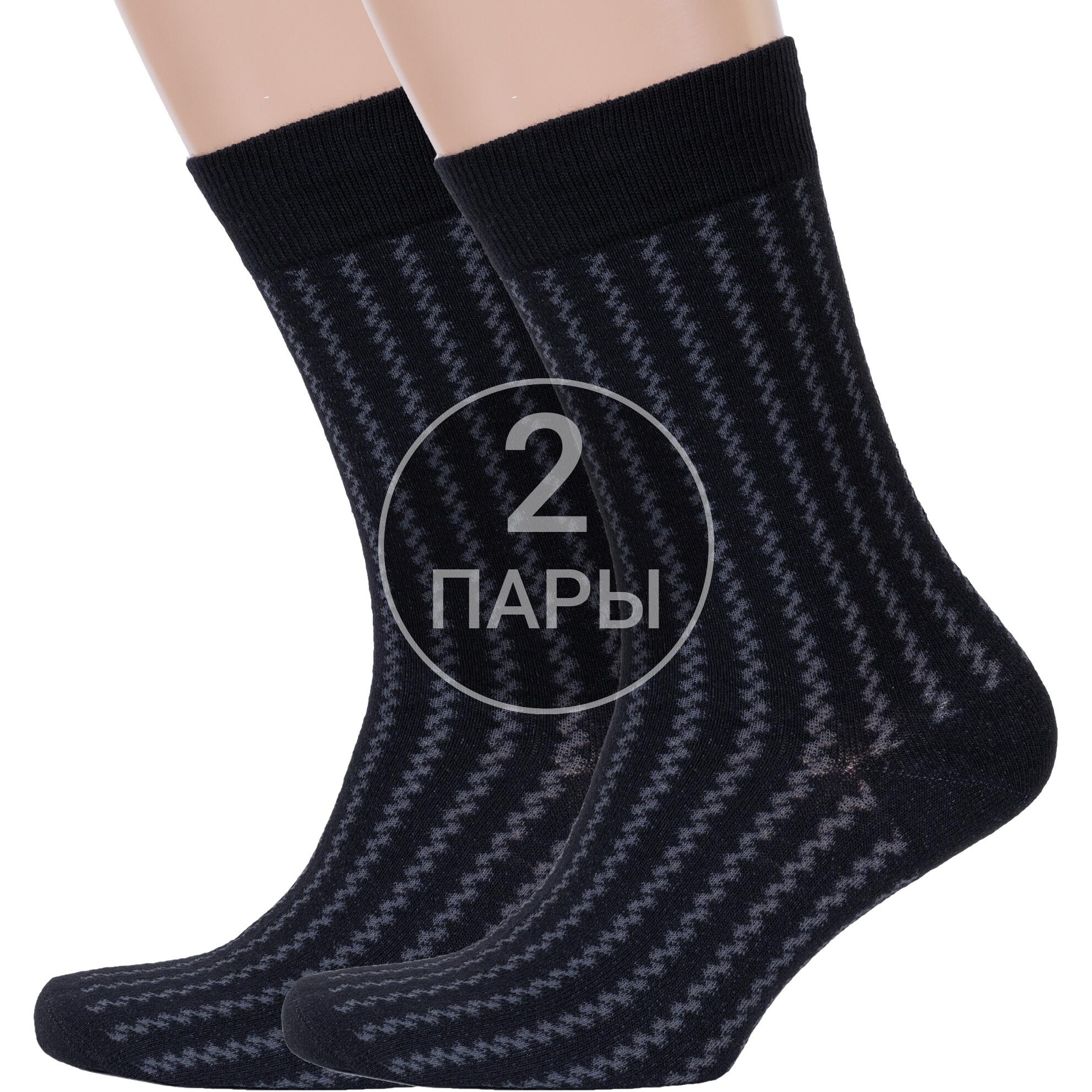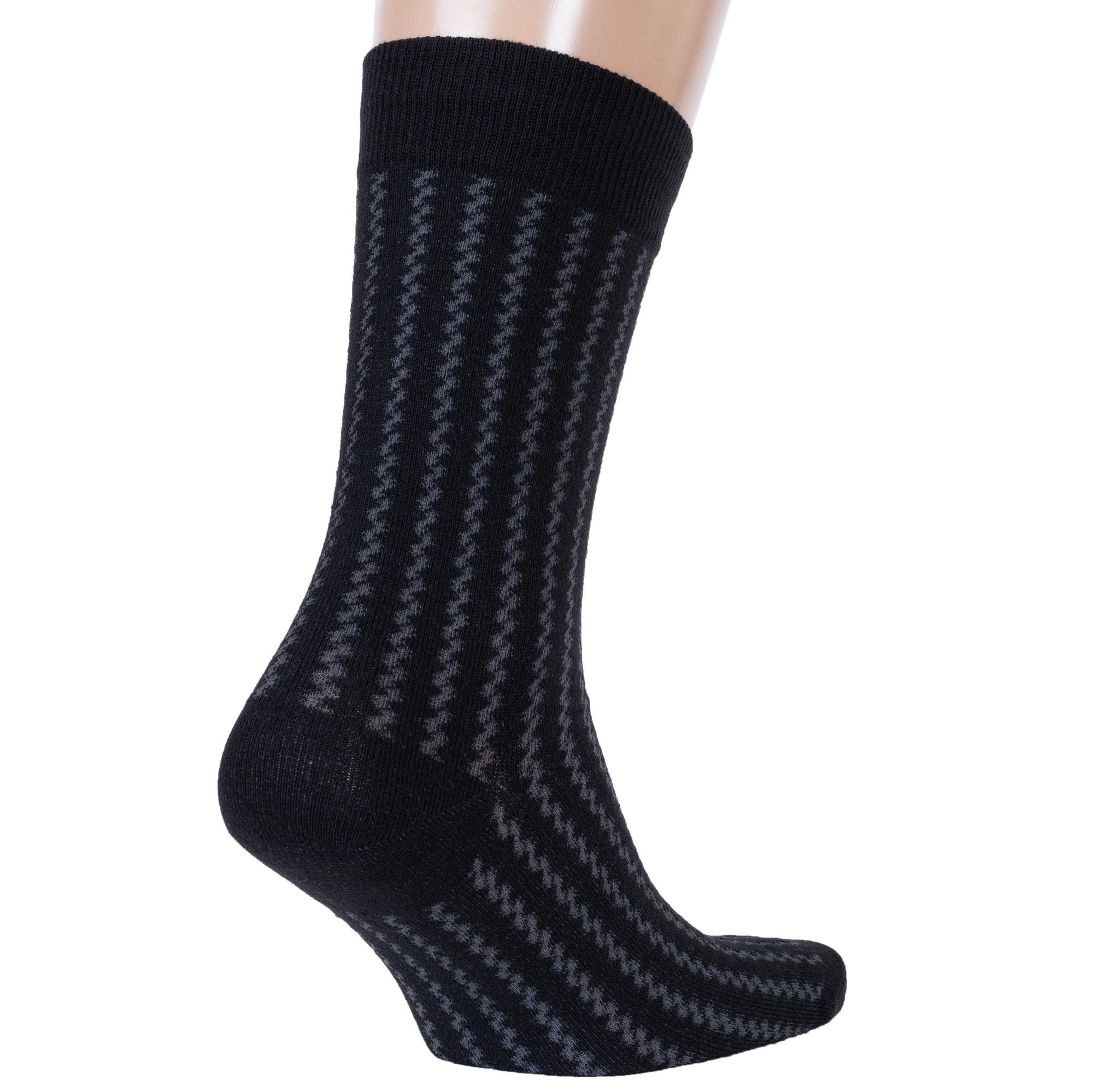 Комплект мужских носков из 2 пар, круглогодичные, средней длины, цвет черный, повседневные, возможно бесшовные, принт (рисунок): полоски, зигзаг / молния, с узором, состав: 71% хлопок, 24% полиамид, 5% эластан, арт. 2-С-1327. Производитель «КРАСНАЯ ВЕТКА» Россия под брендом «Красная ветка».